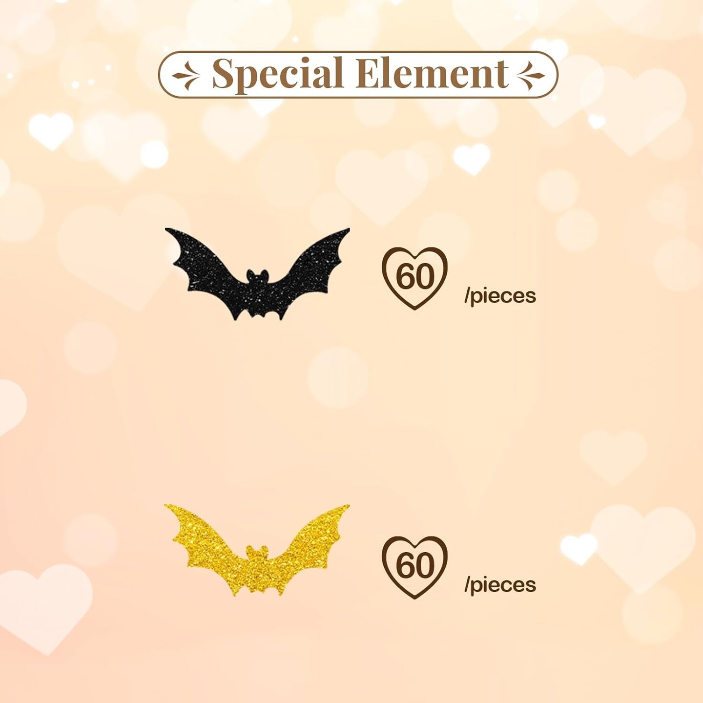 120pcs Bat Confetti, Bat Shaped Paper Scatter, Black&Gold Glitter