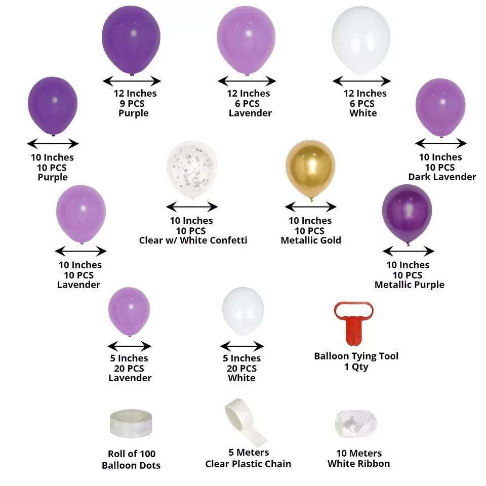 121 Purple White Gold Clear Balloons Garland Arch Party Decorations Kit Events