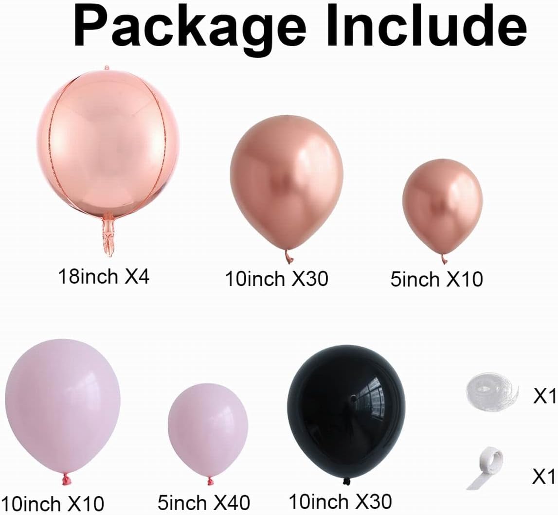 124Pcs Rose Gold Balloon Garland Arch Kit Black Pink and Rose Gold Balloons for Girls Women Birthday Party Wedding Bridal Shower Decorations Graduation Backdrop Decor