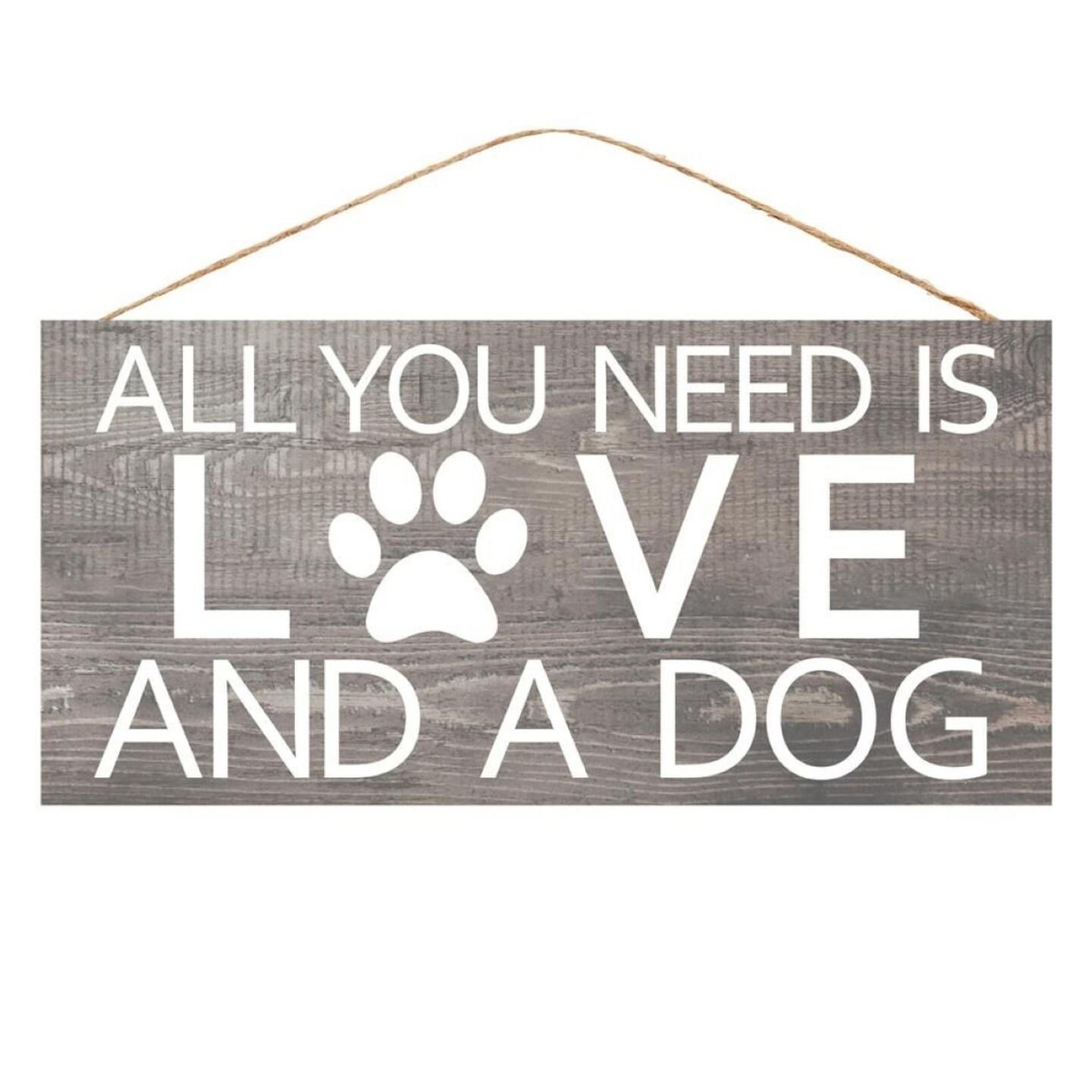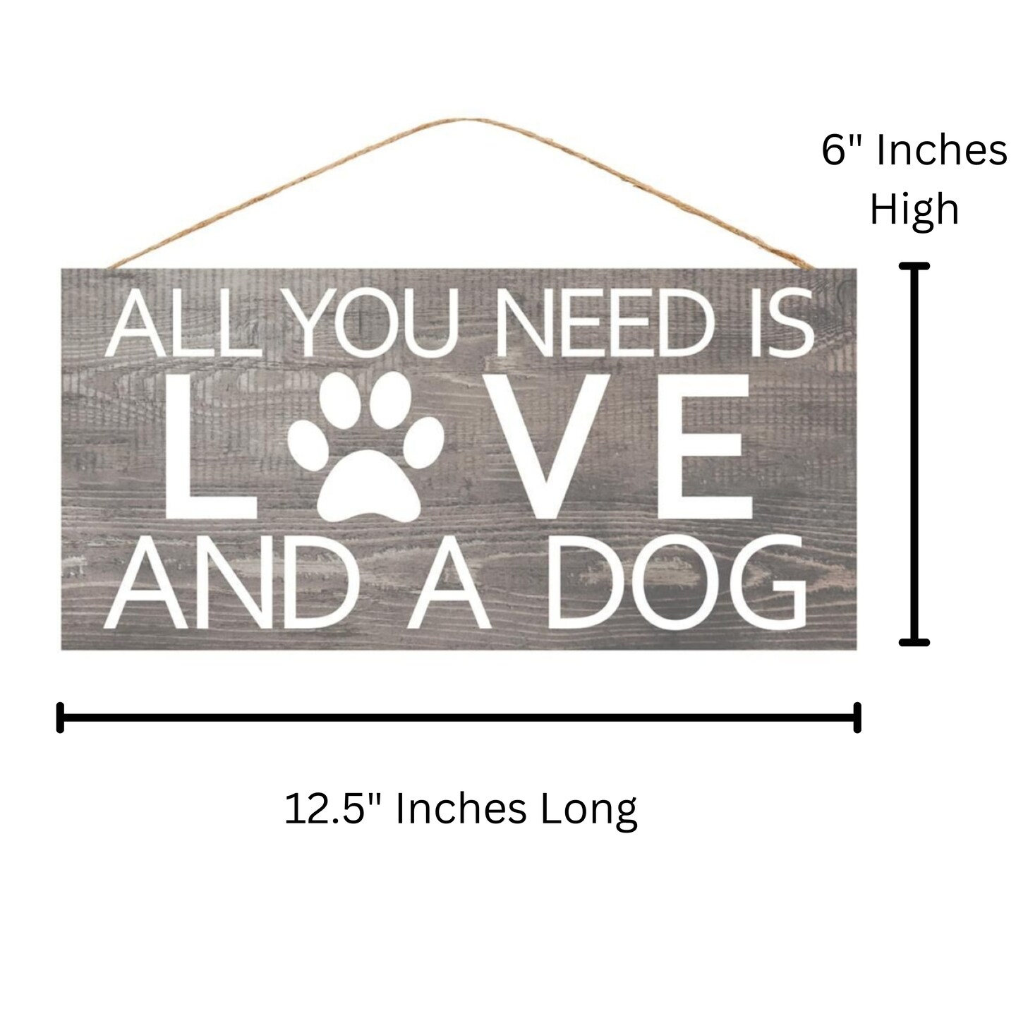 12.5" All You Need is Love and A Dog Sign - Door Hanger - for Wreath Accents, Crafts, and Wall Decorations - Puppy Paw, Grey, Neutral, White