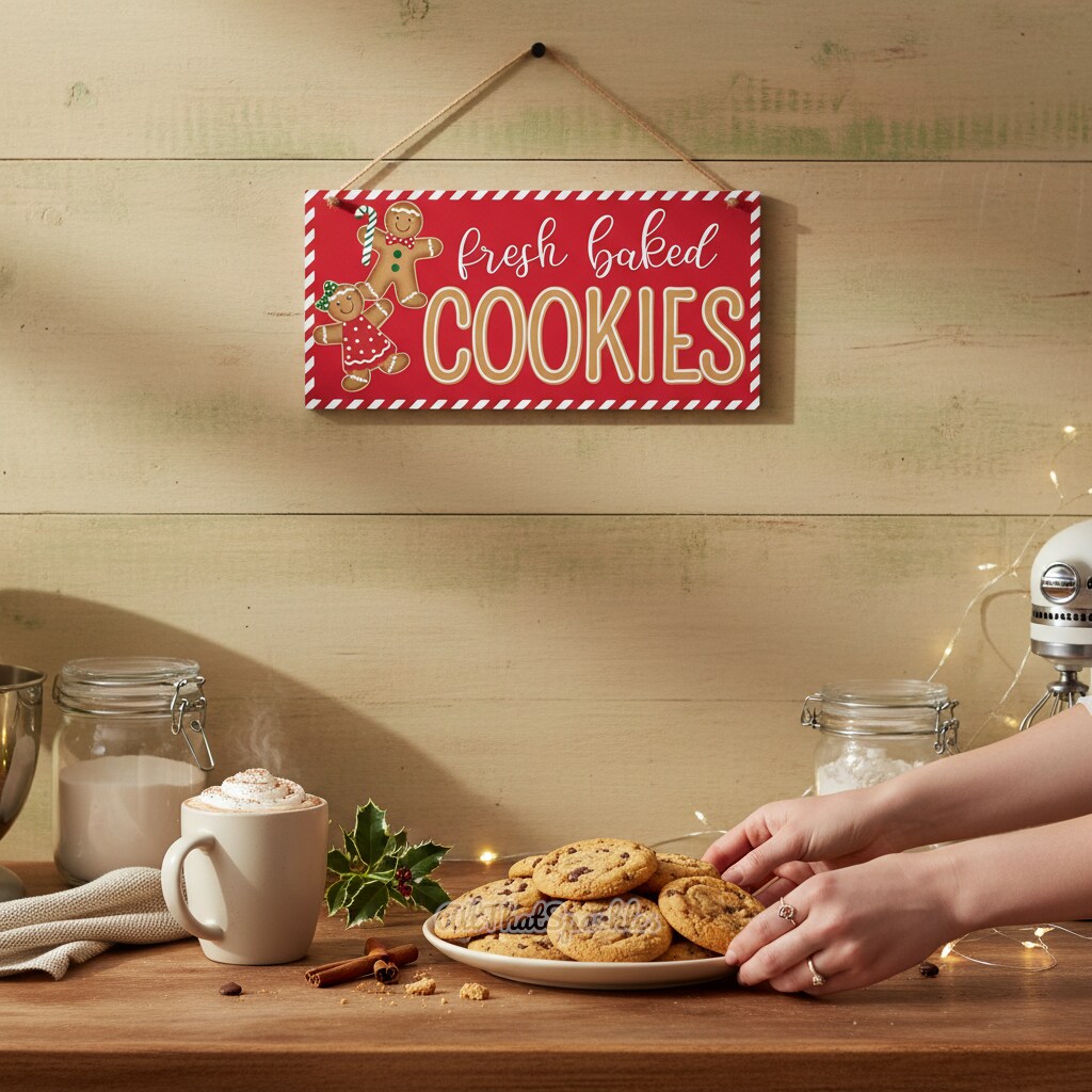 12.5" Fresh Baked Gingerbread Cookies Door Hanger Sign, MDF Wood for Christmas Wreath Accents, Crafts, and Decorations