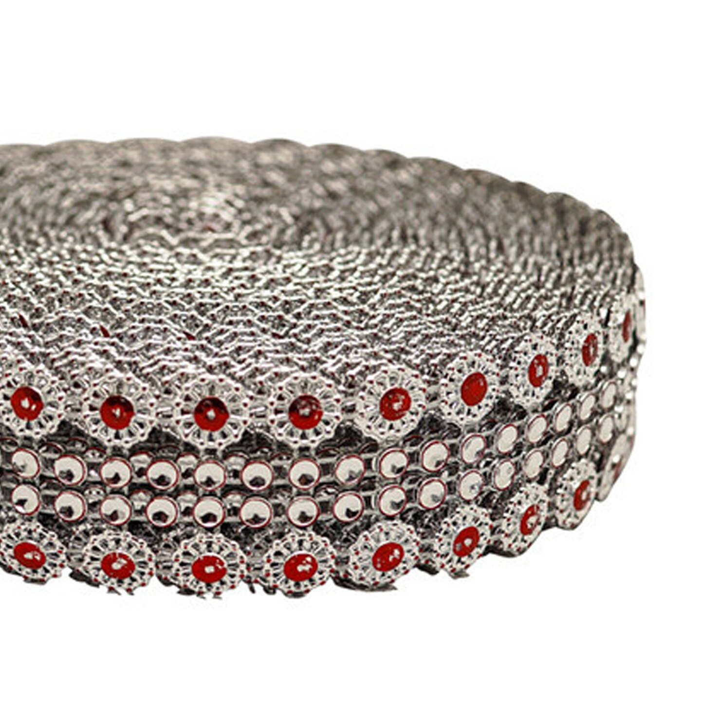 1.25" x 10 Yards Silver / Red Mesh Wrap