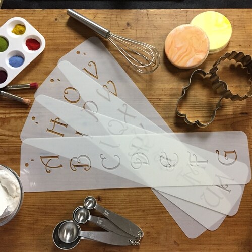 1.25-Inch Contemporary Monogram Letters Cake Stencil | C106 by Designer Stencils | Cake Decorating Tools | Baking Stencils for Royal Icing, Airbrush, Dusting Powder | Reusable Plastic Food Grade Stencil for Cakes | Easy to Use & Clean