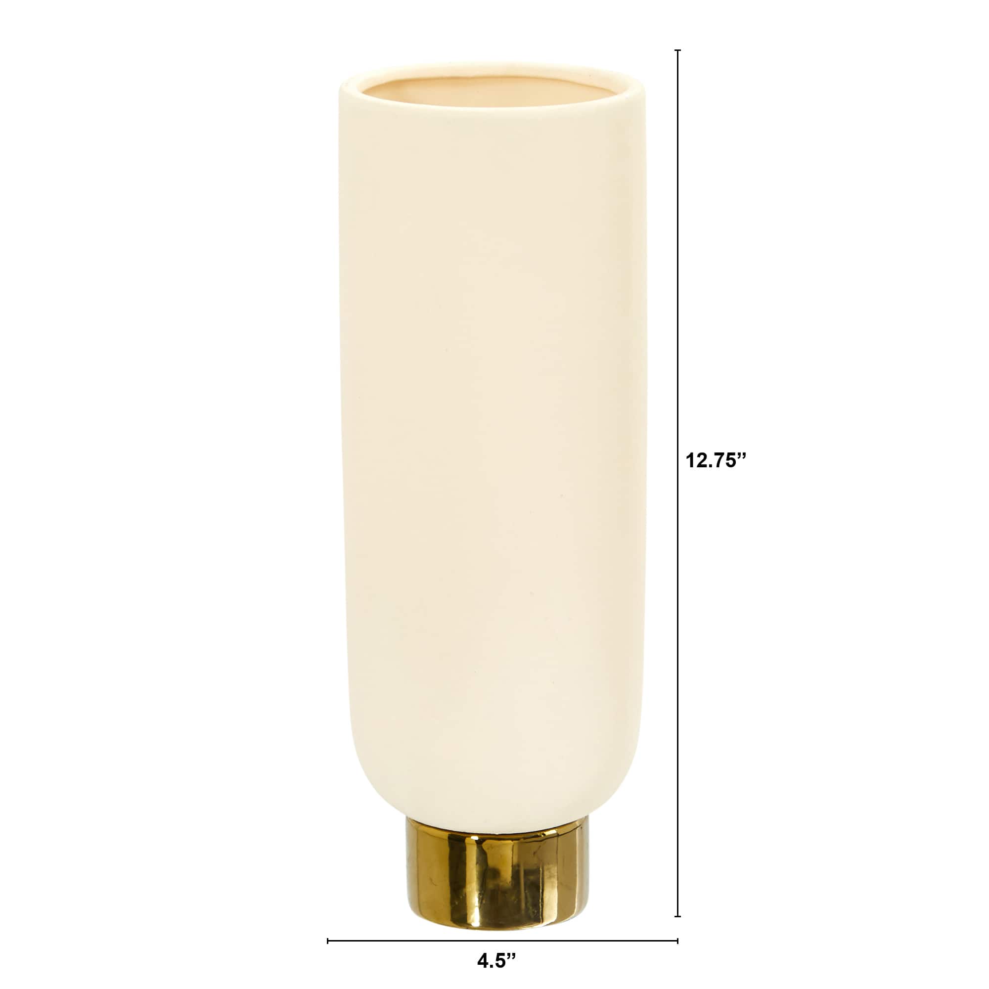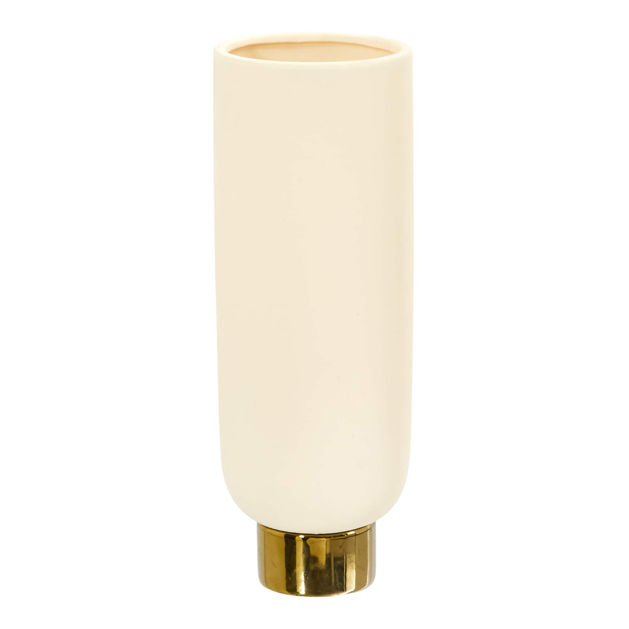 12.75" Elegance Ceramic Cylinder Vase with Gold Accents