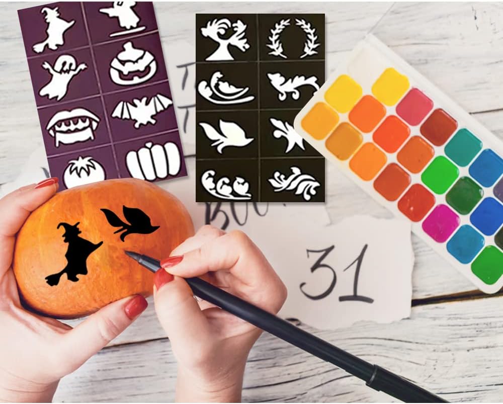 128 Piece Face & Body Paint Stencils(	multicolor)