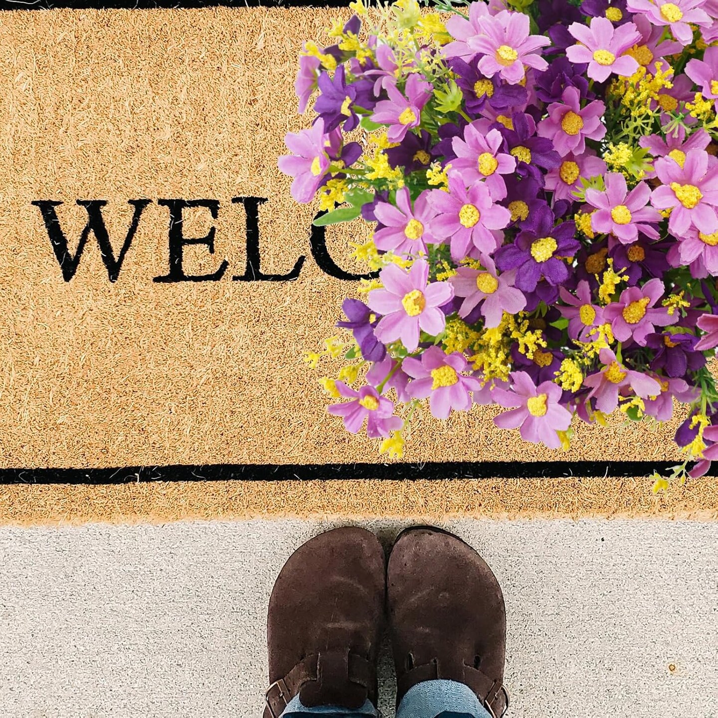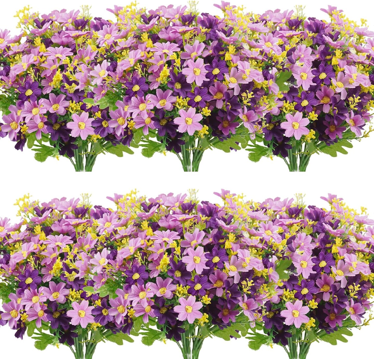 12-Bundle Artificial Outdoor Flowers – UV-Resistant Faux Daisy Mums and Shrubs for Indoor/Outdoor Planters, Home, Wedding, DIY Garden, Porch, and Decor (Purple)