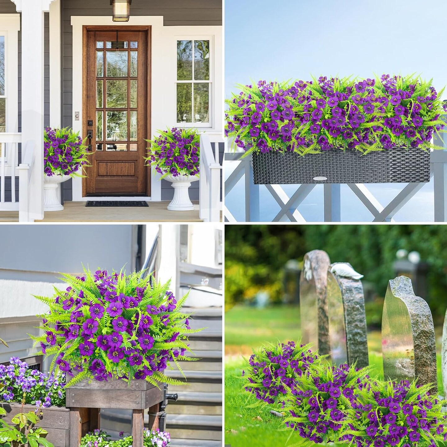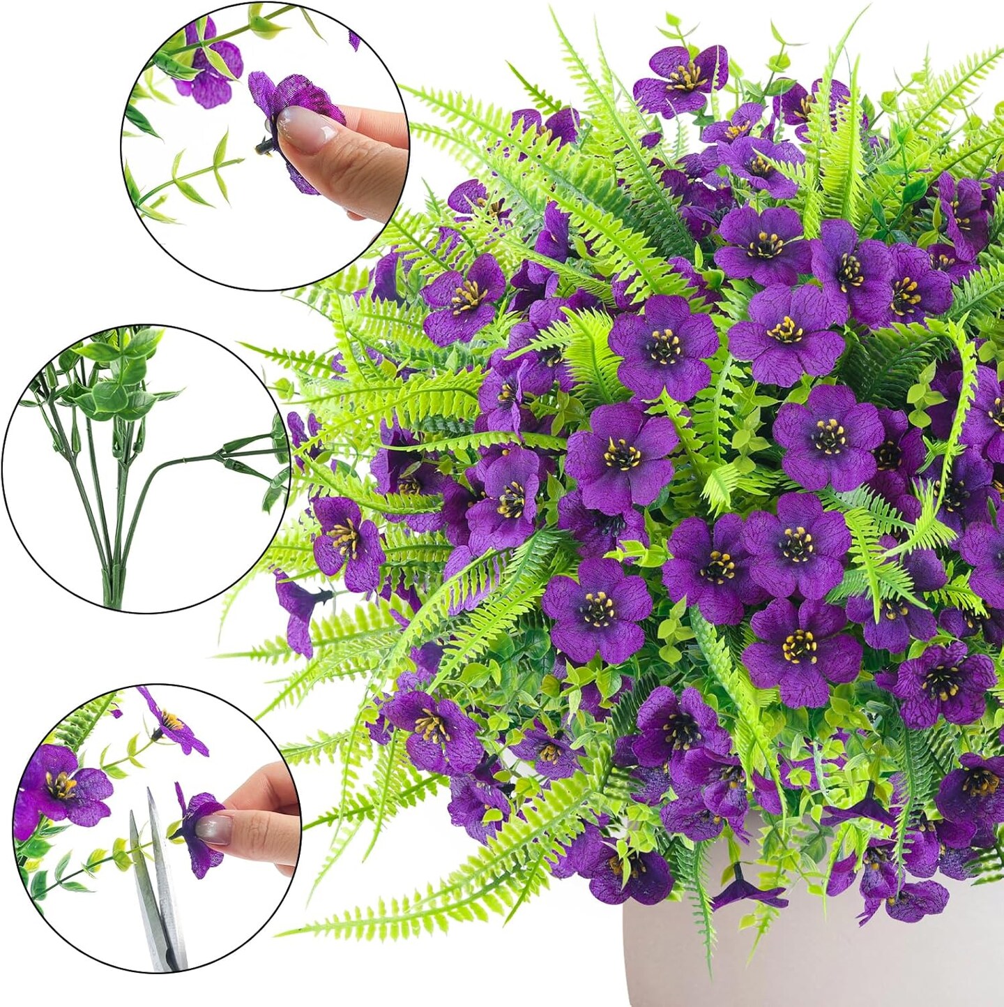 12-Bundle Artificial Outdoor Flowers – UV-Resistant Faux Eucalyptus Plants for Spring Garden, Hanging Planters, Vases, and Home Decor (Purple)