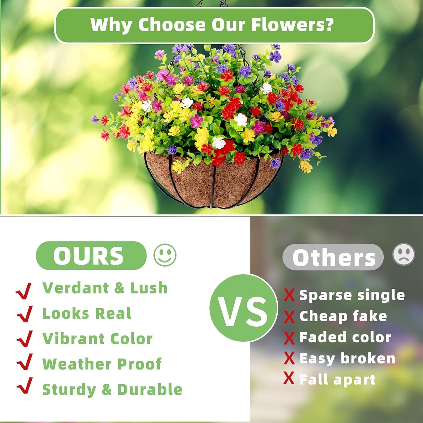 12-Bundle Artificial Outdoor Flowers – UV-Resistant Faux Plants, Plastic Greenery, No-Fade Fake Flowers for Garden, Planters, Porch, and Window Decor (Multi-Color)