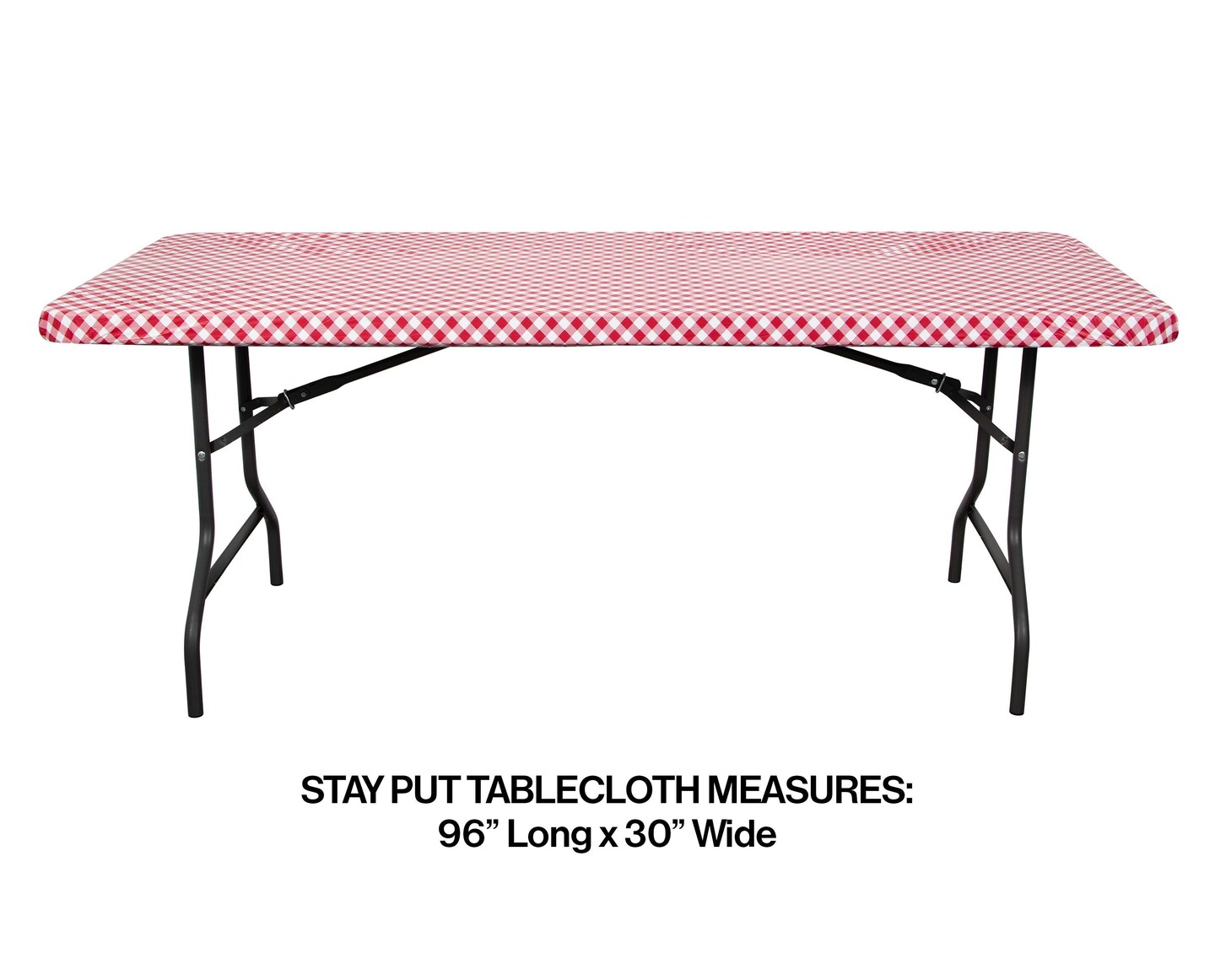12/Case Bulk Red and White Gingham 30" x 96" Rectangular Stay Put Plastic tablecover