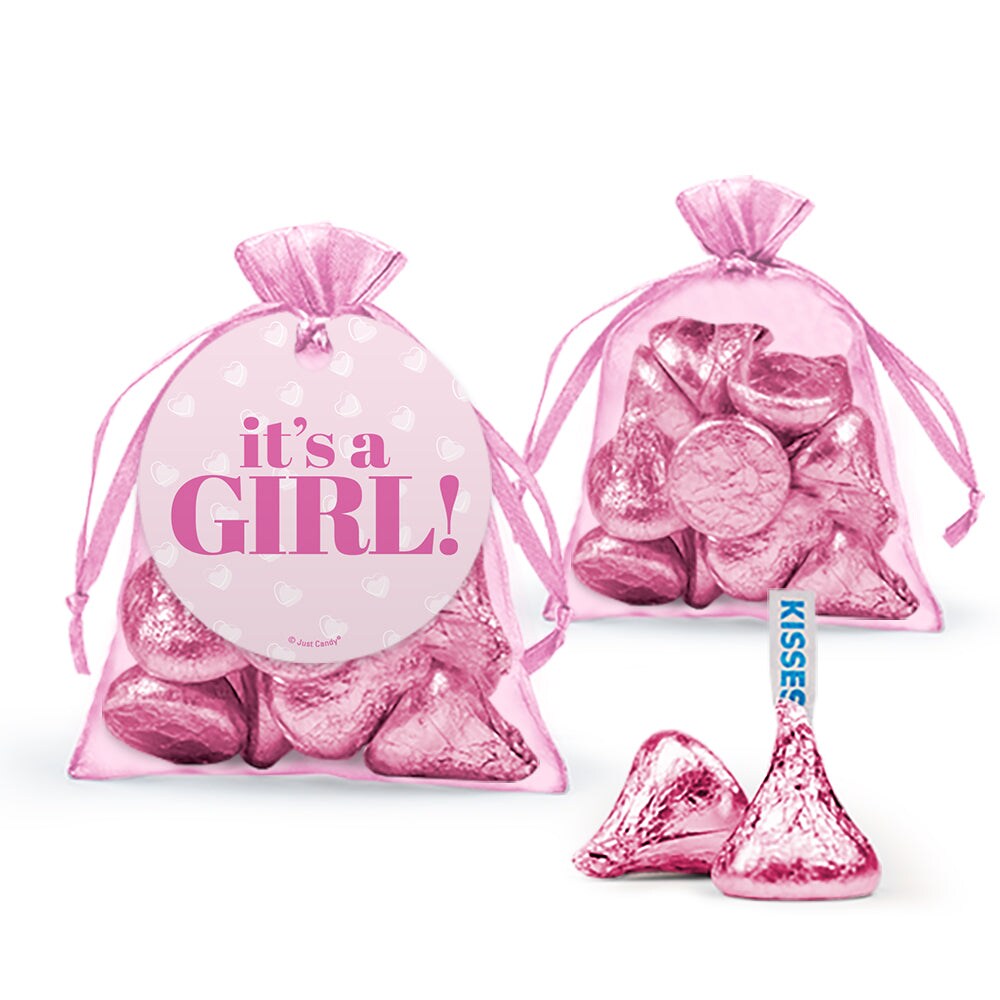 12ct It's a Girl Candy Baby Shower Party Favors Organza Bags with Milk Chocolate Kisses (12 Pack)