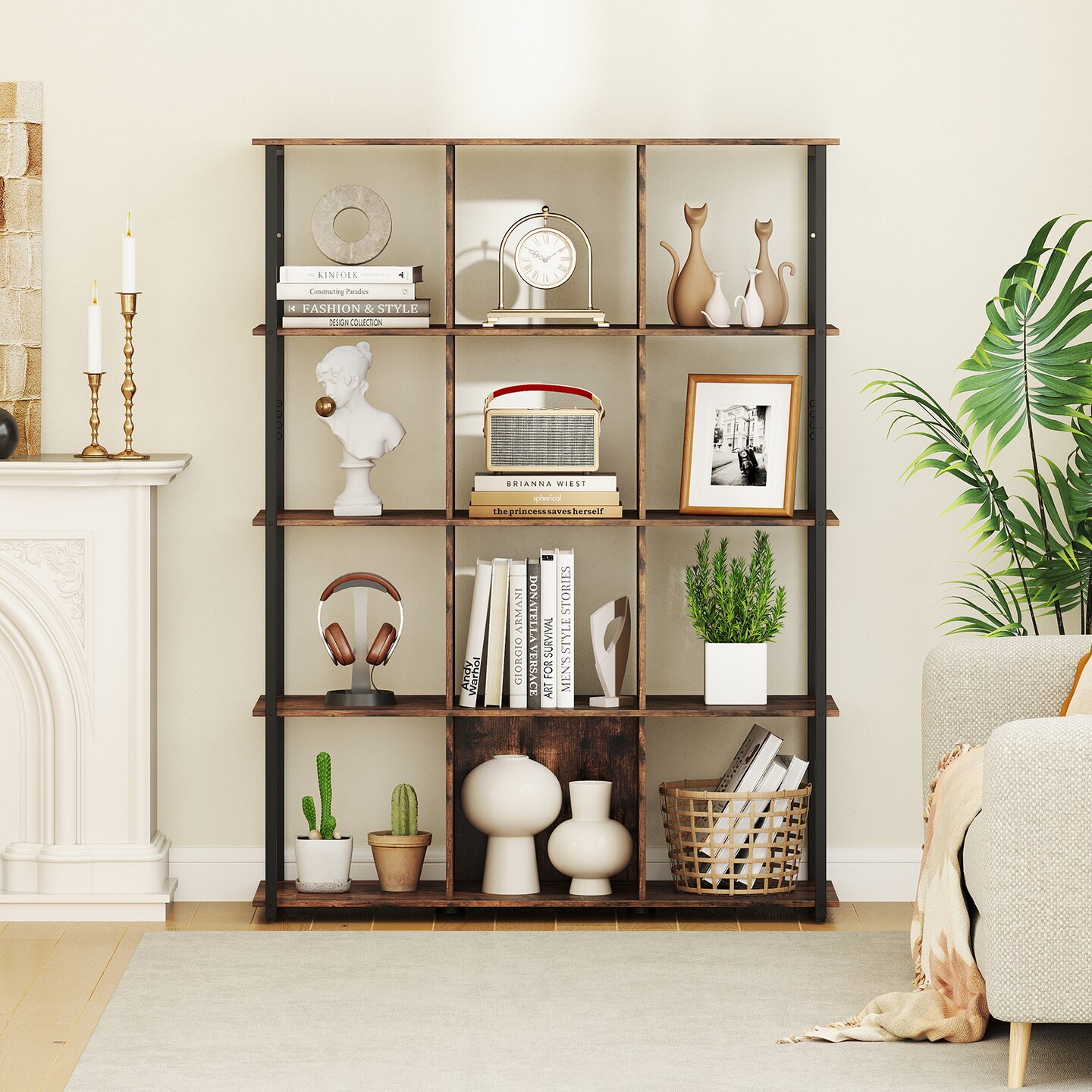 12-Cube Multi-Purpose 5-Tier Cube Storage Bookcase with Rustic Finish and Black Metal Frame