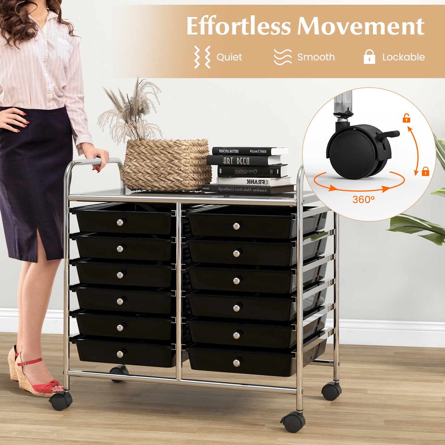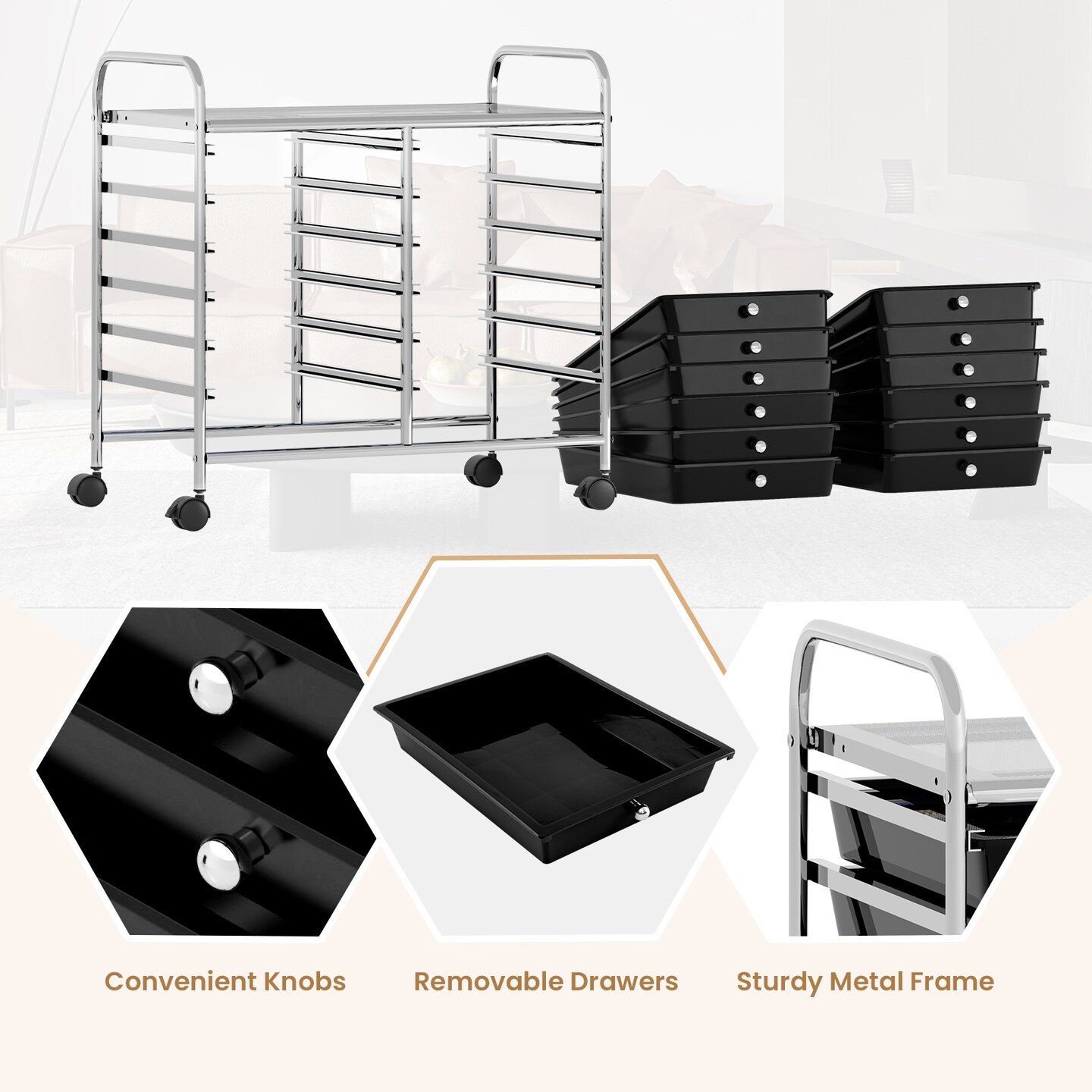 12-Drawer Mobile Storage Cart with Metal Frame for Office, Home, School