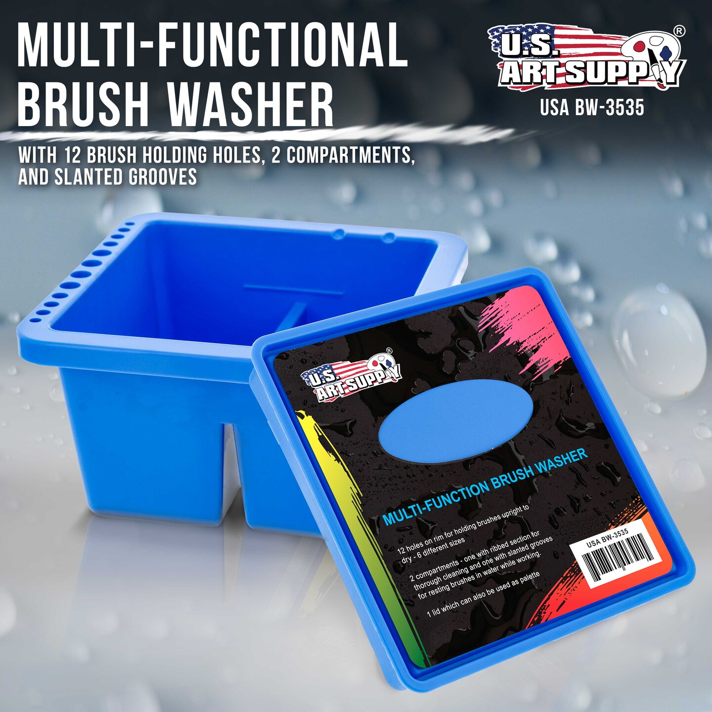 12-Hole Plastic Paint Brush Cleaner Washer & Paint Brush Holder with Palette Lid for Acrylic, Watercolor, Oil
