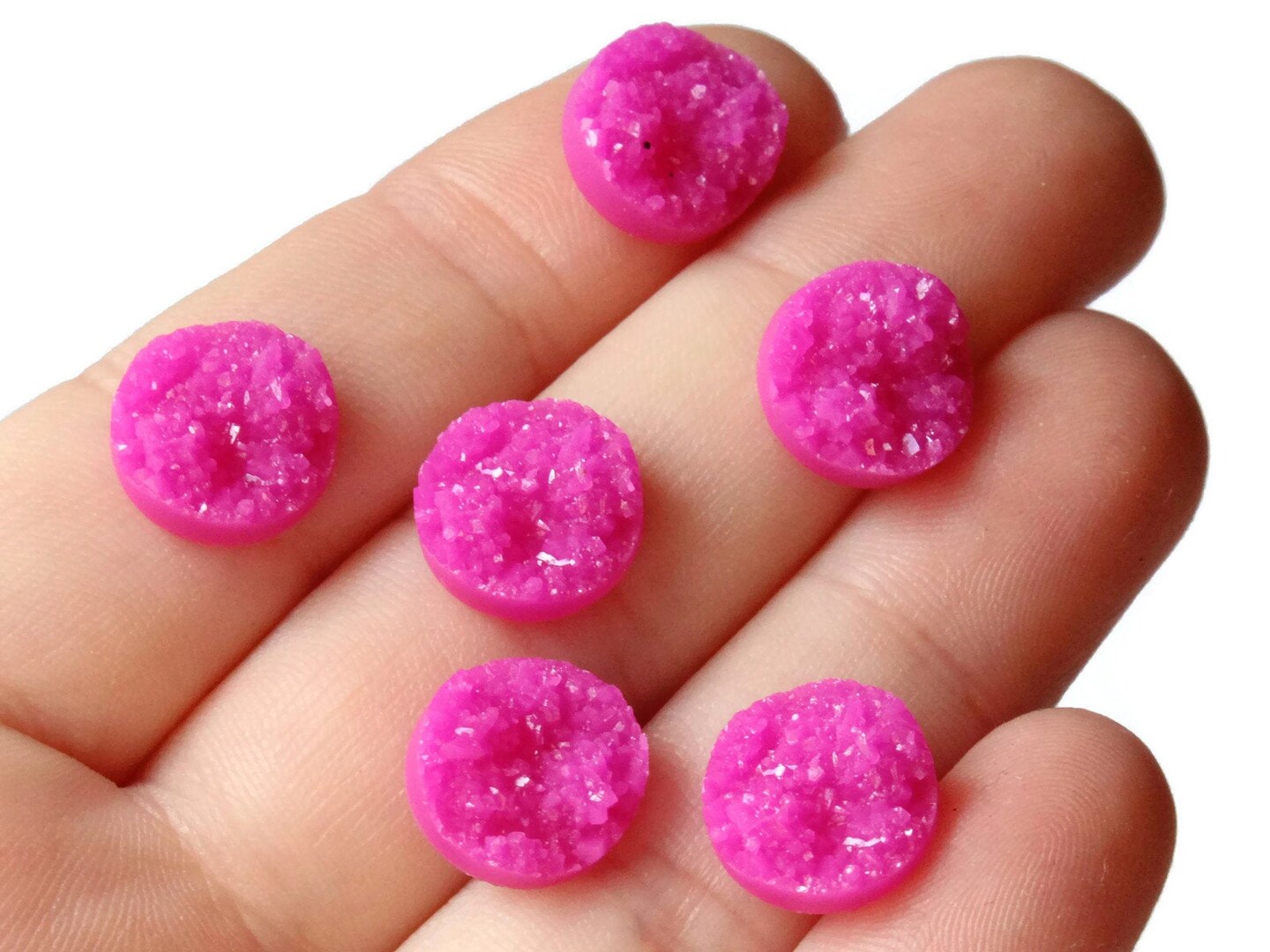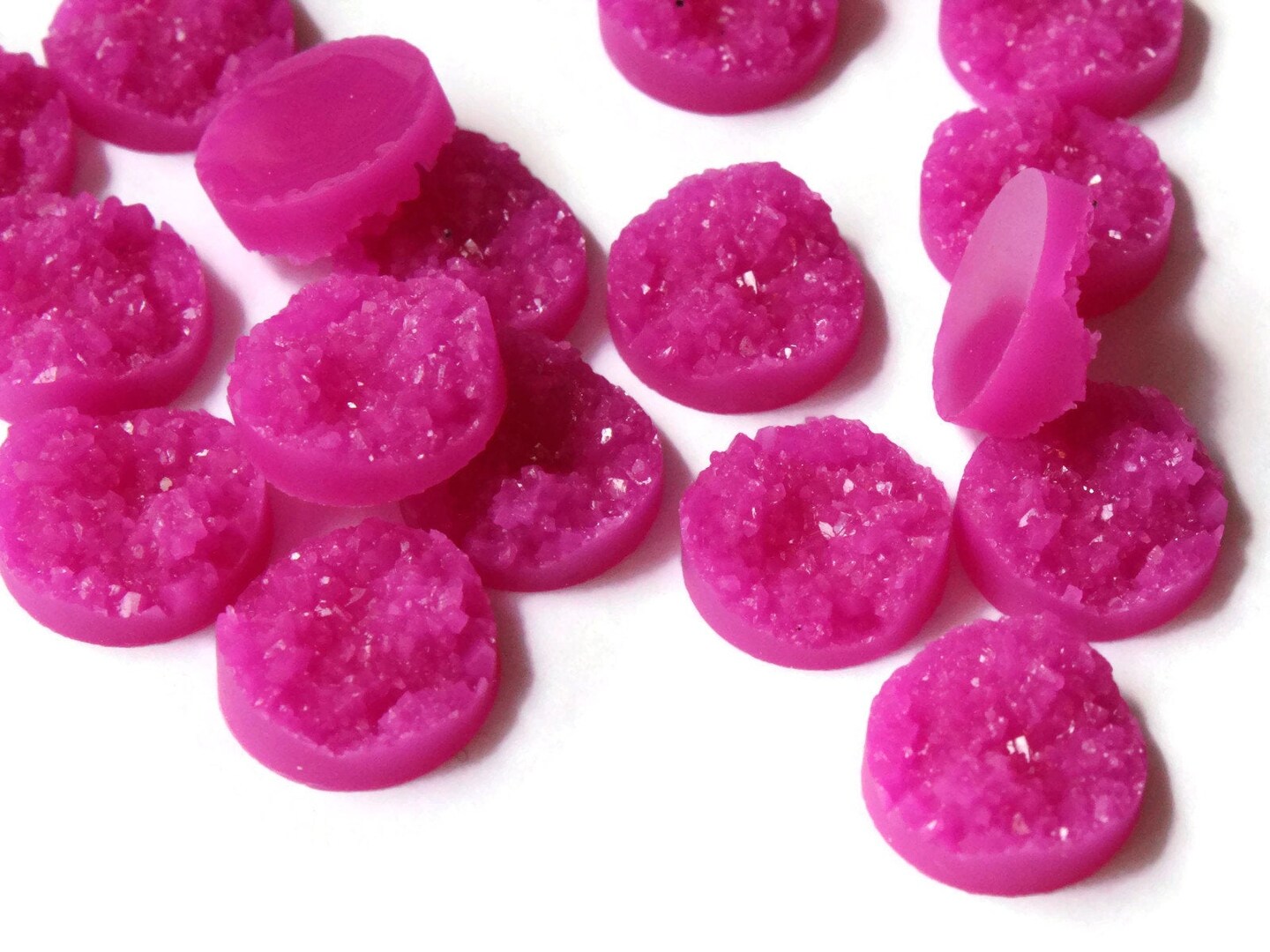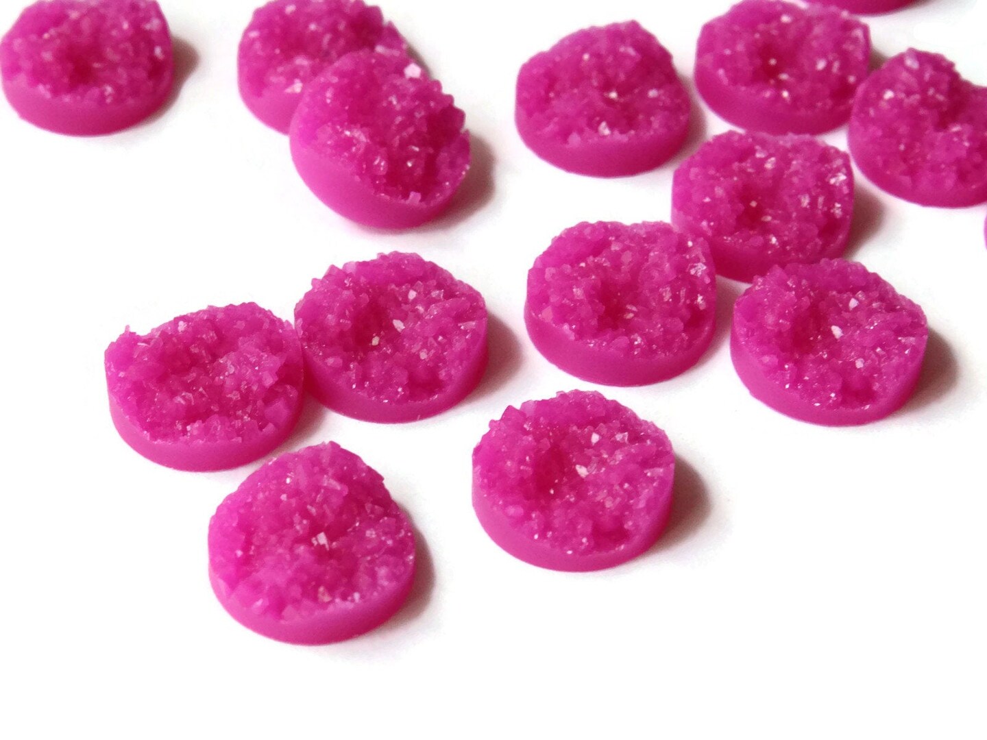 12mm Fuchsia Purple Round Resin Druzy Cabochons