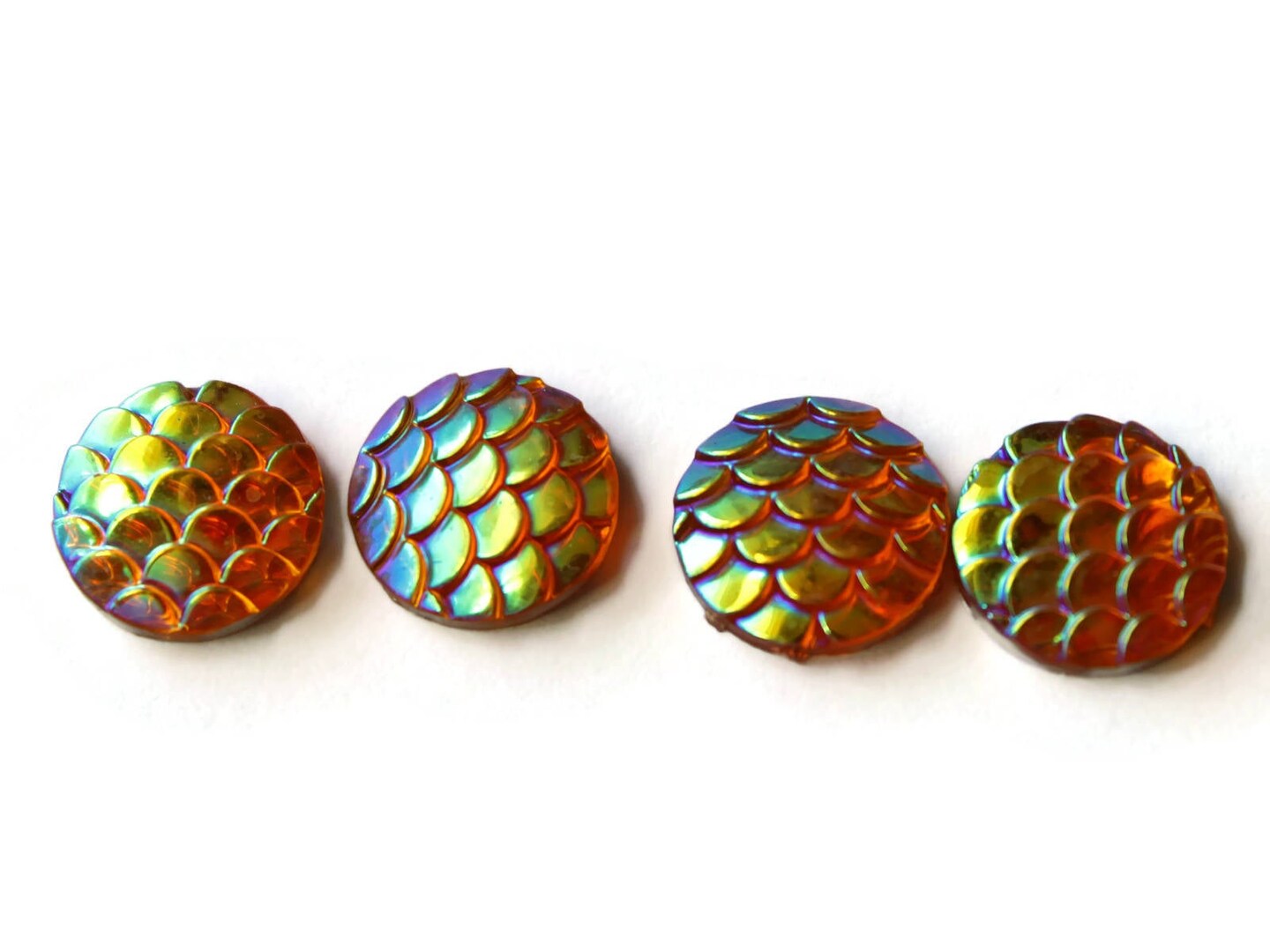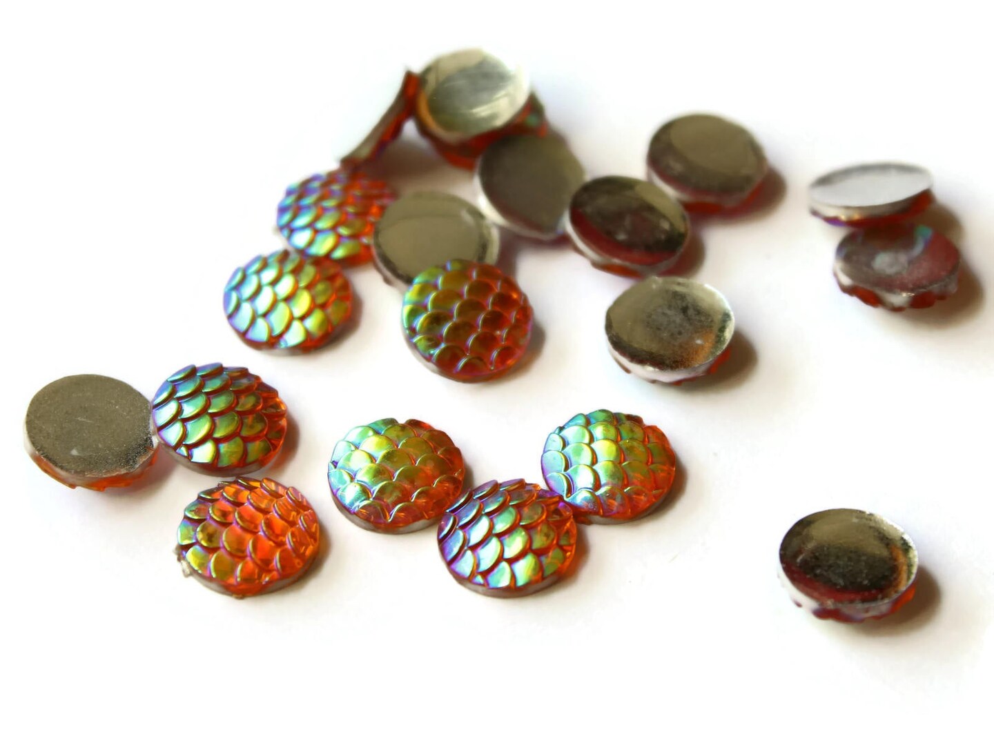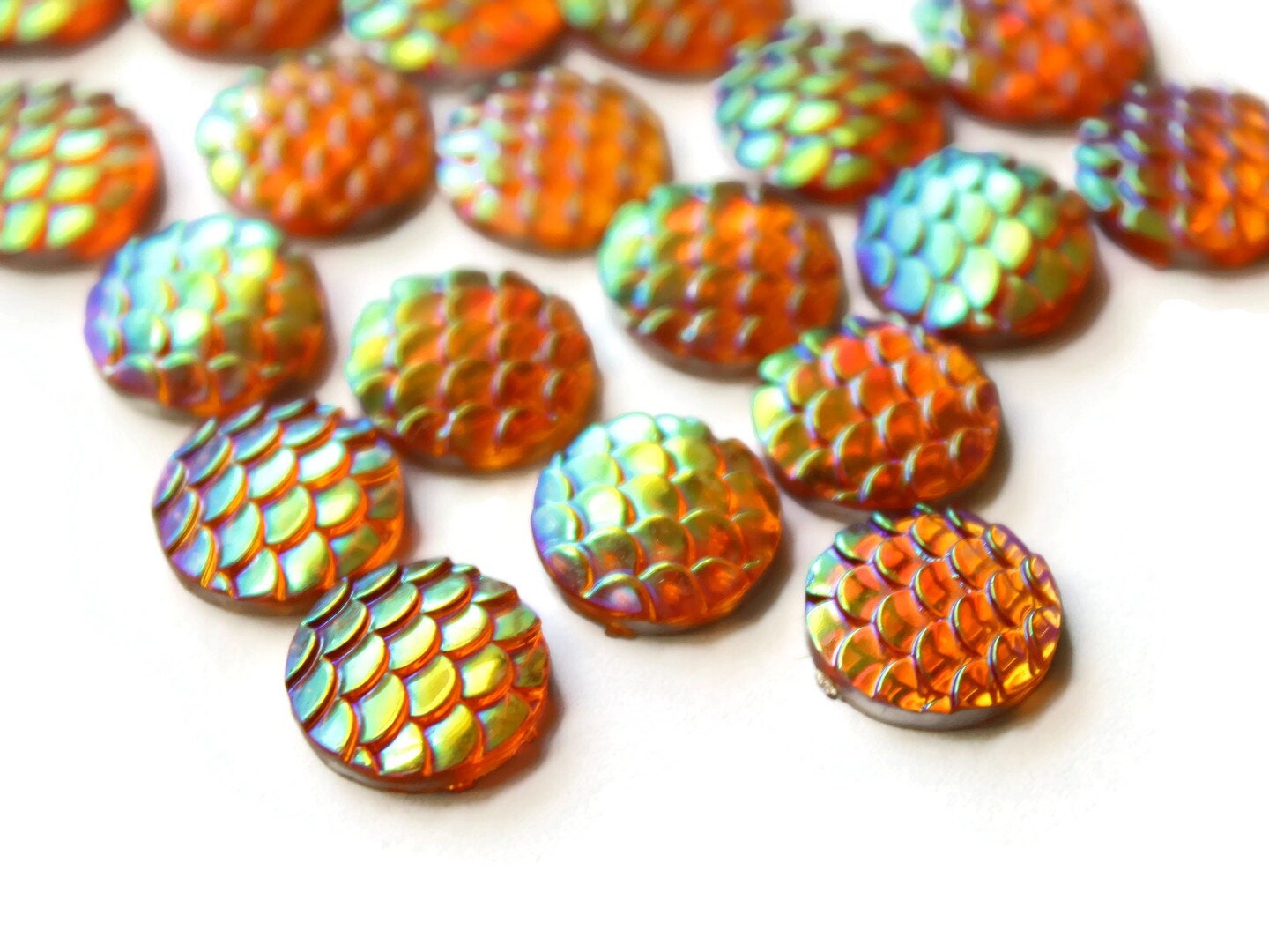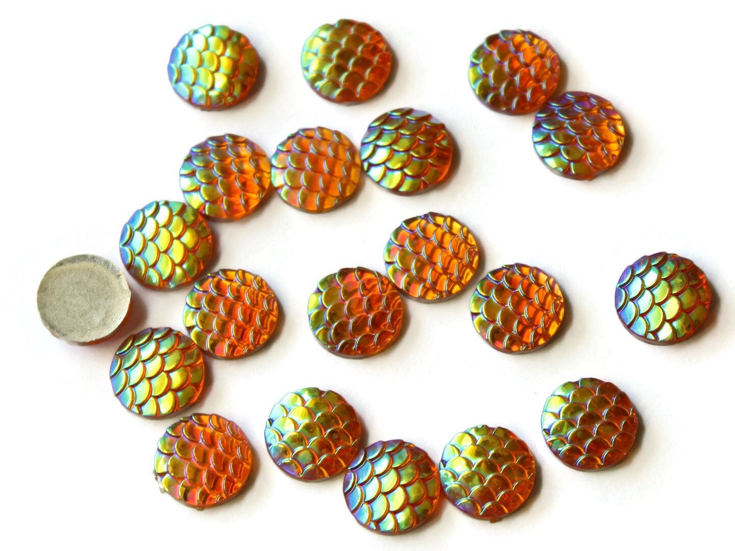 12mm Golden Orange Mermaid Cabochons - Round Resin Cabochons