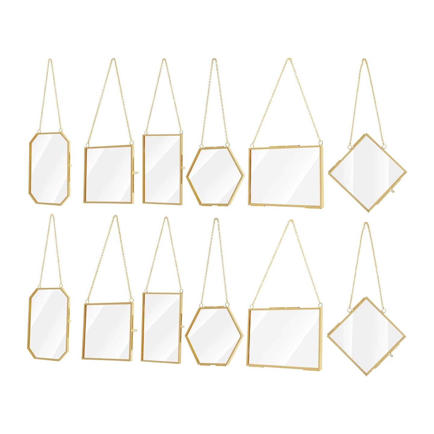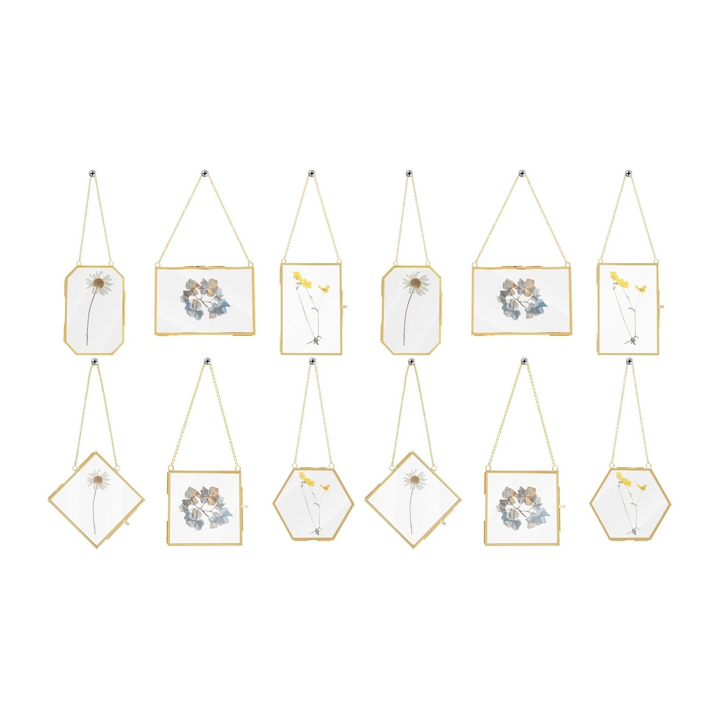 12-Pack Brass Glass Frames Hanging Pressed Flower Display