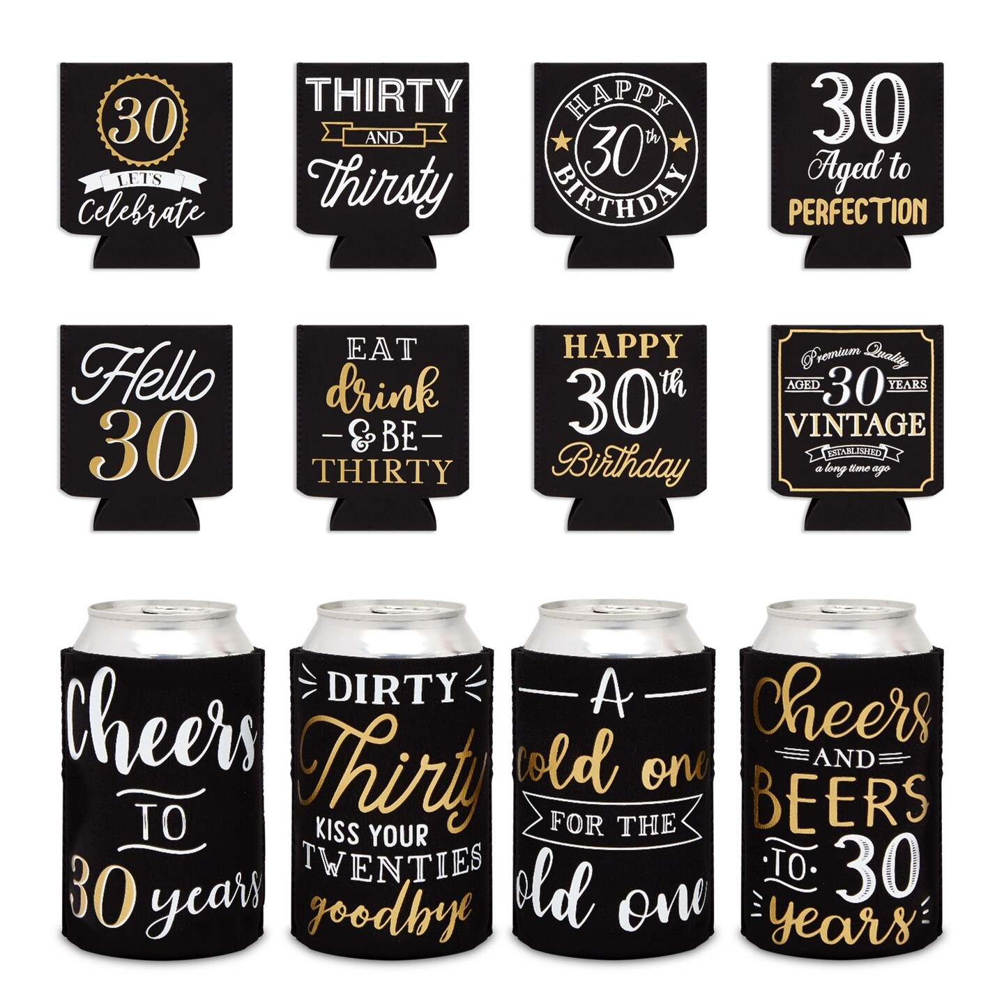 12-Pack Can Cooler Sleeves, 12 Assorted Designs Insulated Neoprene Holder Party Supplies - 30th Birthday