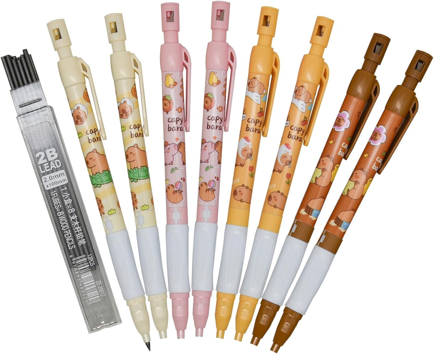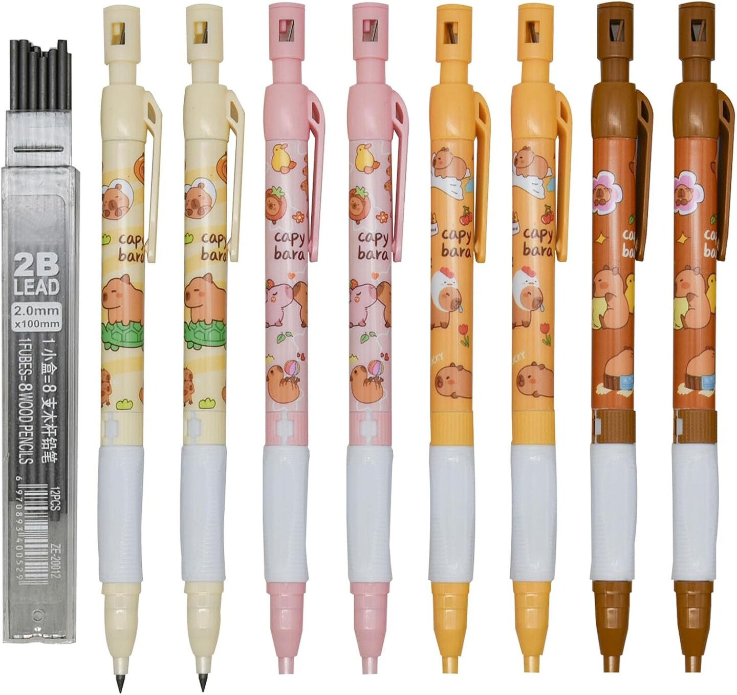 12-Pack Capybara Mechanical Pencils with Built-In Sharpener – 2.0mm Non-Sharpening Automatic Pencils with 12 2B Lead Refills – Fun School, Drawing, and Writing Supplies (Black)