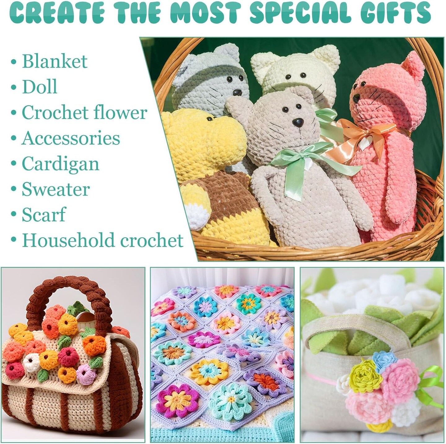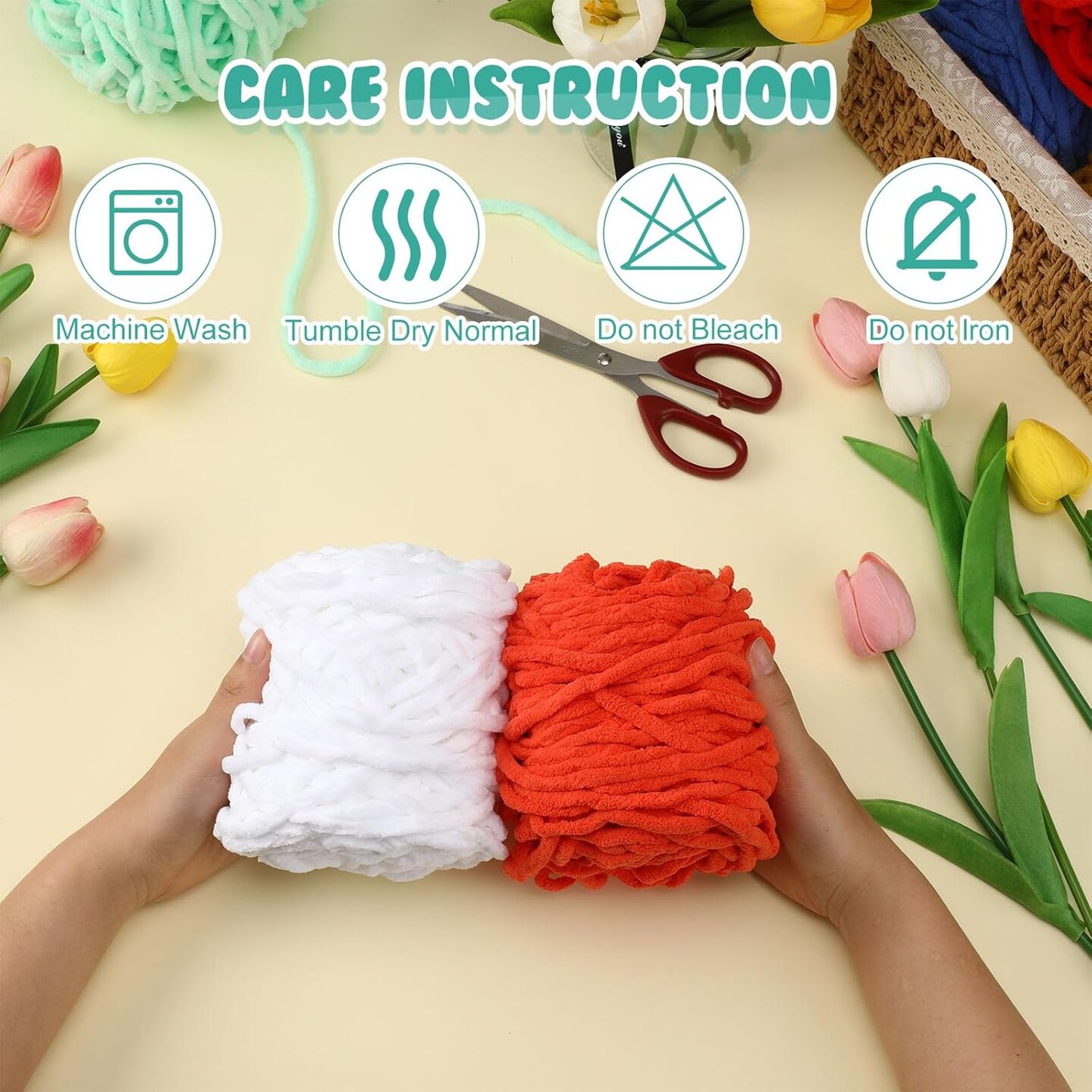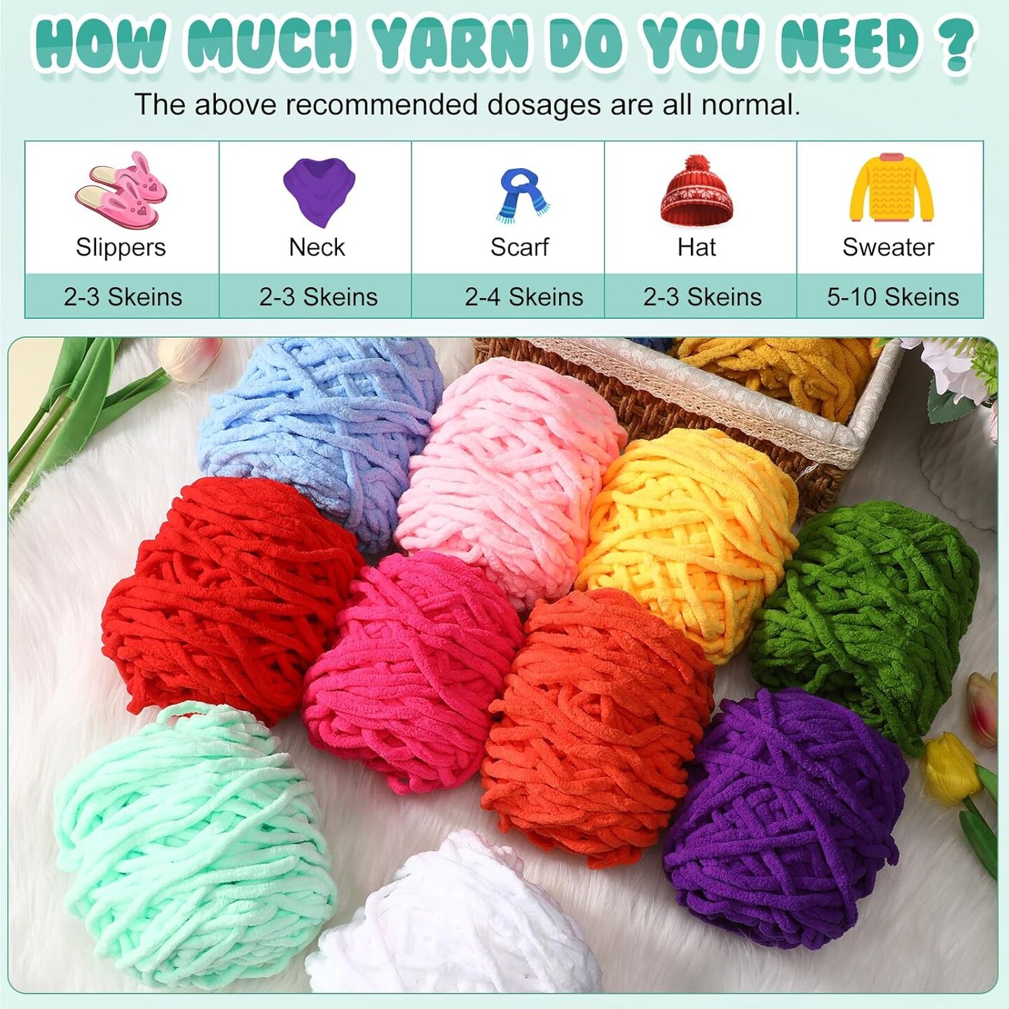 12-Pack Chunky Chenille Yarn – Soft, Thick & Fluffy Velvet Yarn for Crochet, Knitting & DIY Crafts, 3.5 oz / 55 Yards Each, Chic Multicolor Yarn Set