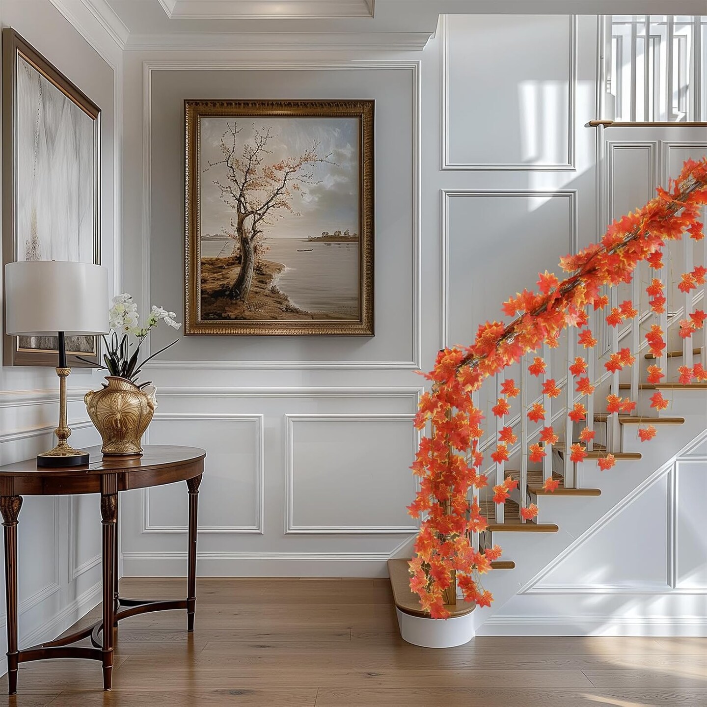 12-Pack Fall Leaf Garland – Artificial Maple Leaf Vines for Room Decor, Autumn Wall Hanging, Thanksgiving, Halloween, Christmas, Weddings, Parties, Fireplace & Garden Decorations (Red)