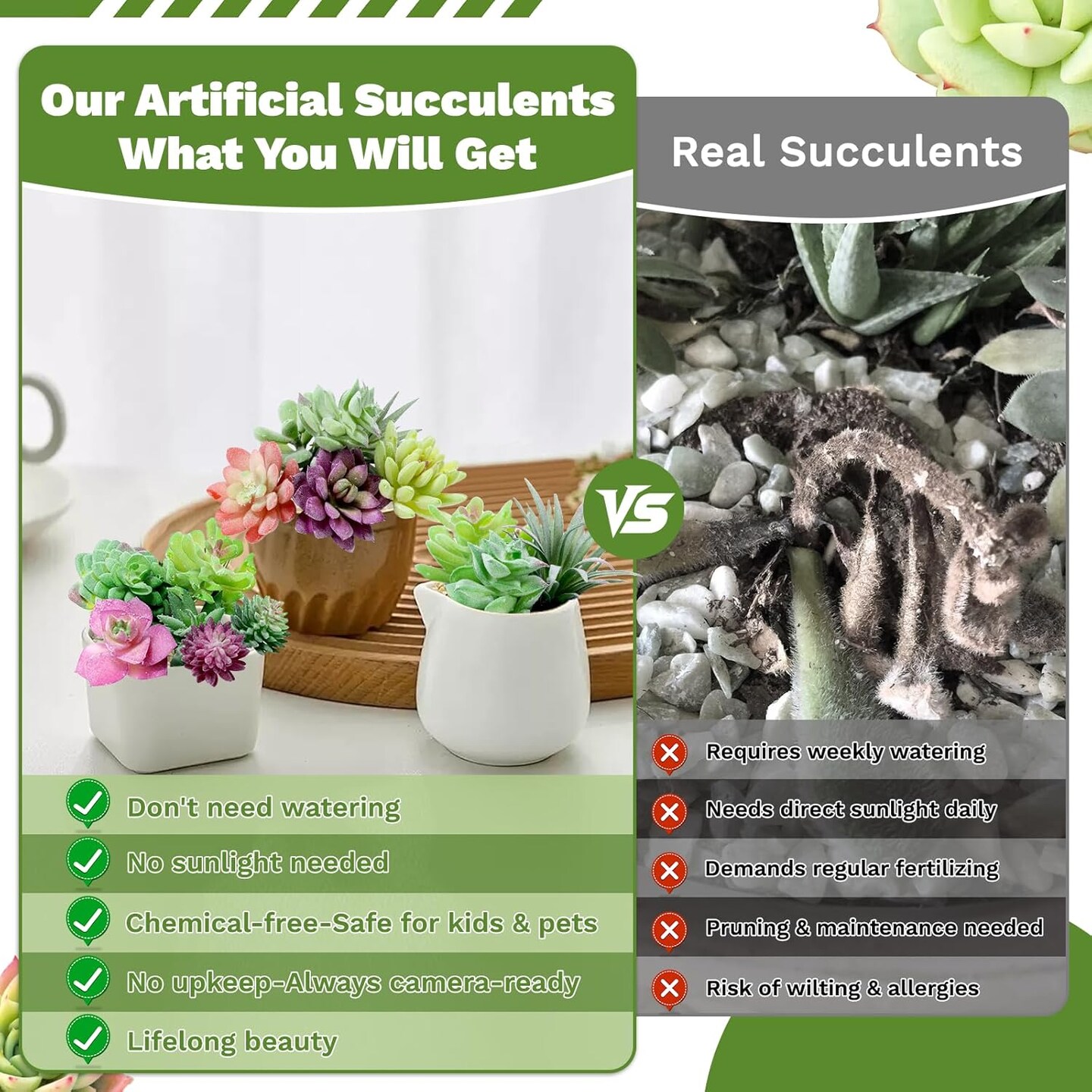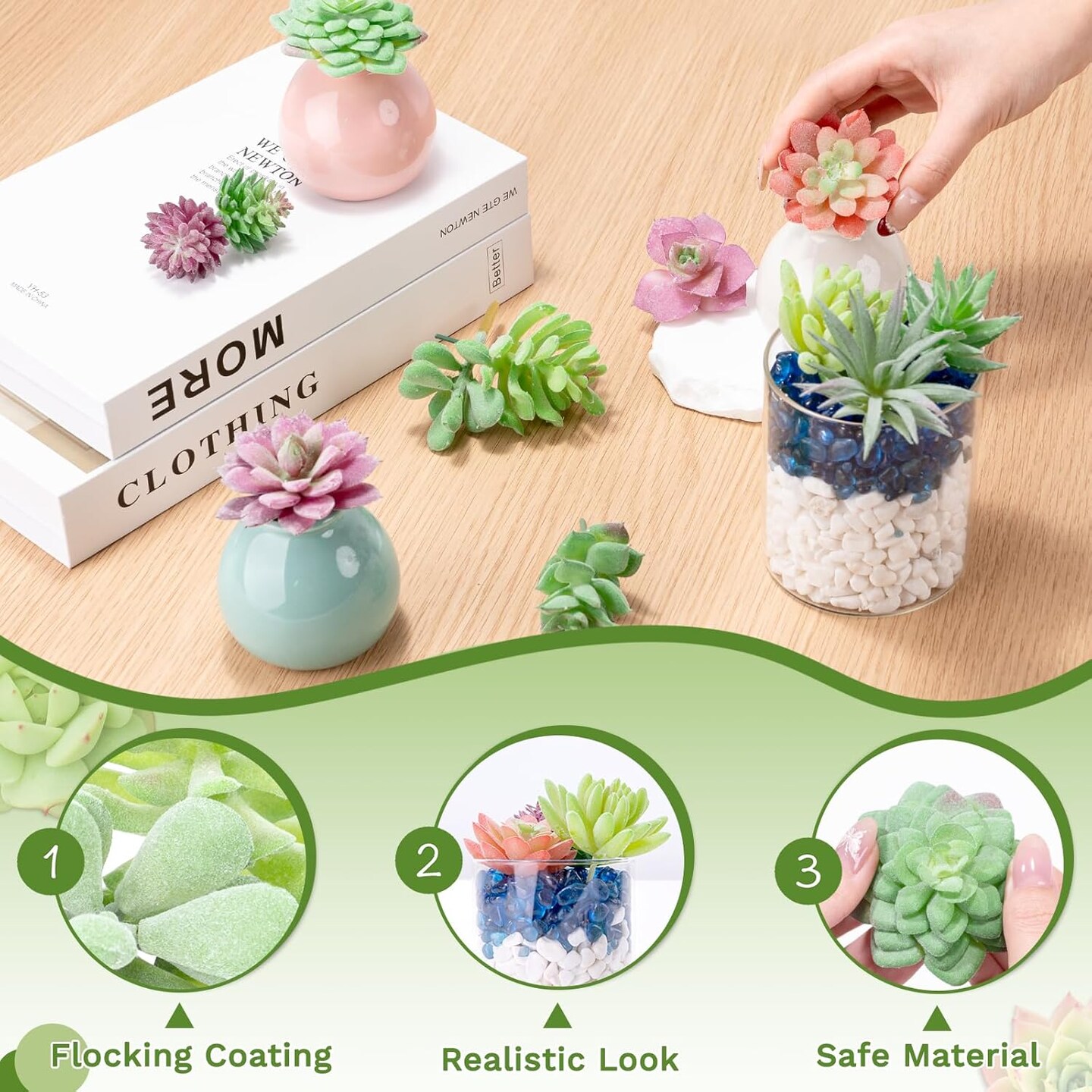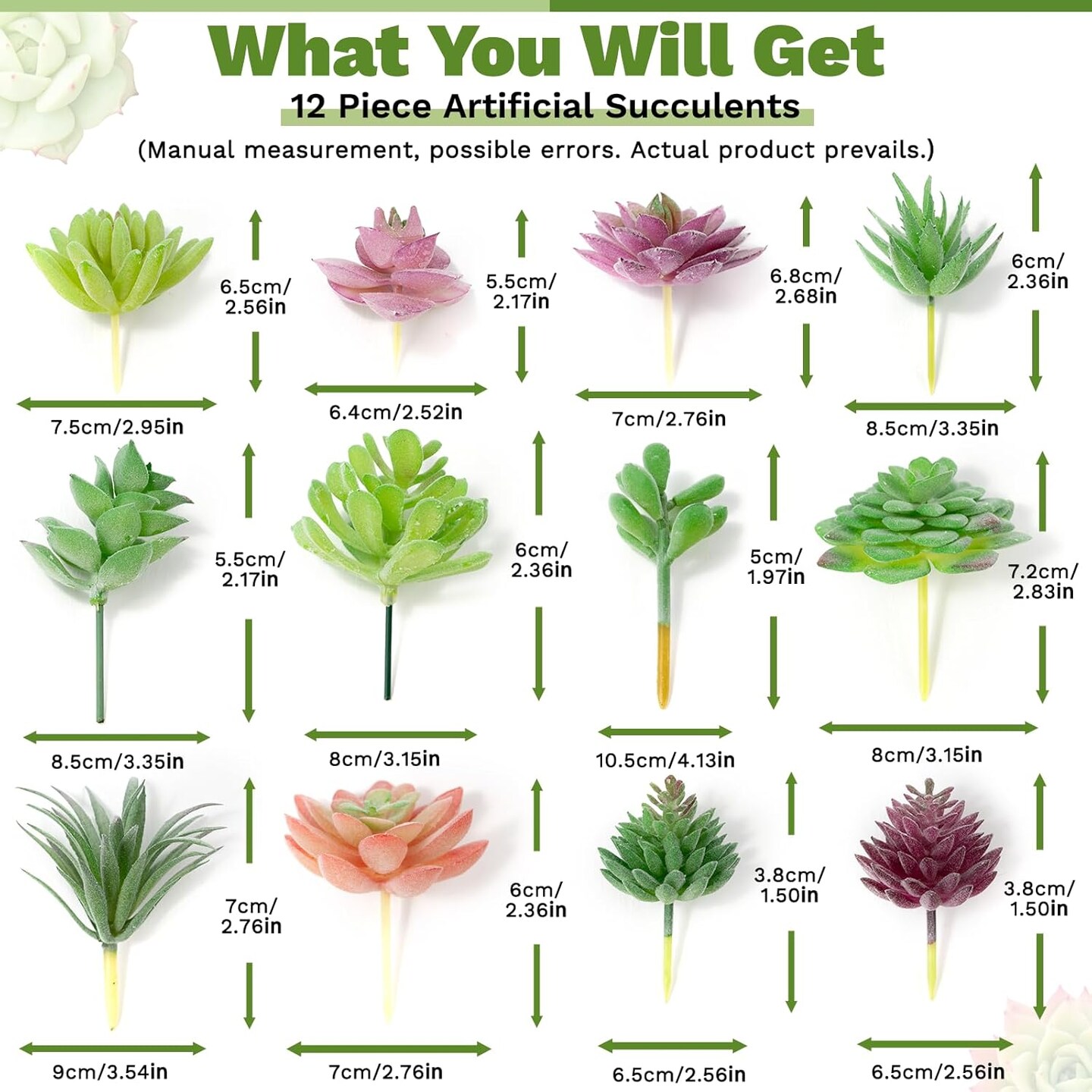 12-Pack Mini Potted Artificial Succulent Set – Realistic Flocked Faux Small Potted Plants for DIY Crafts, Home, Office & Garden Decor (Lifelike PVC, Unpotted Arrangement)