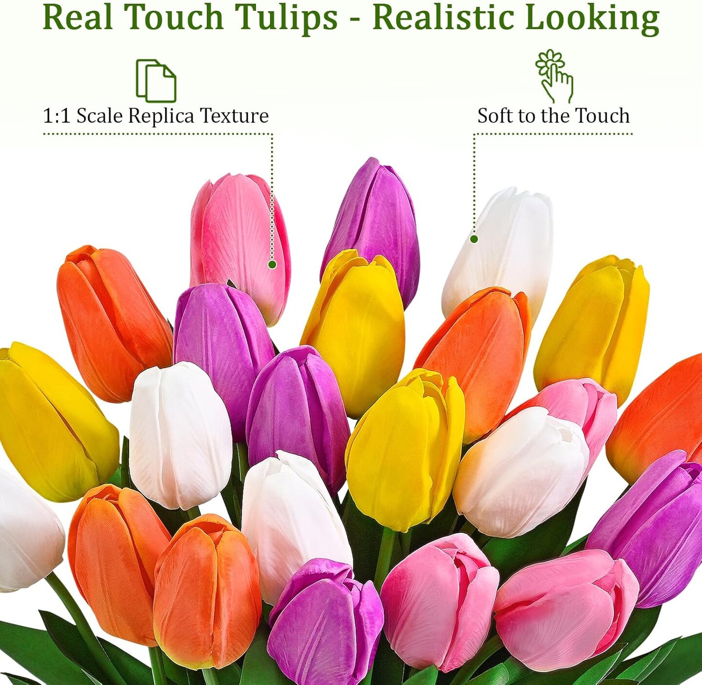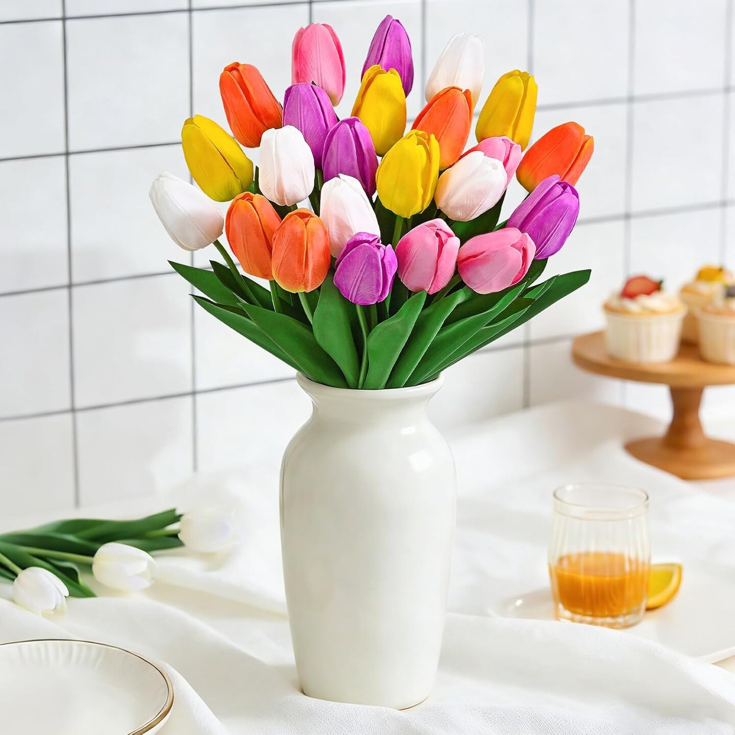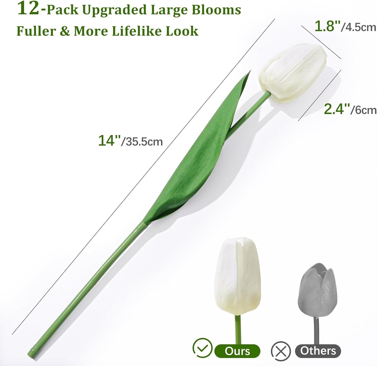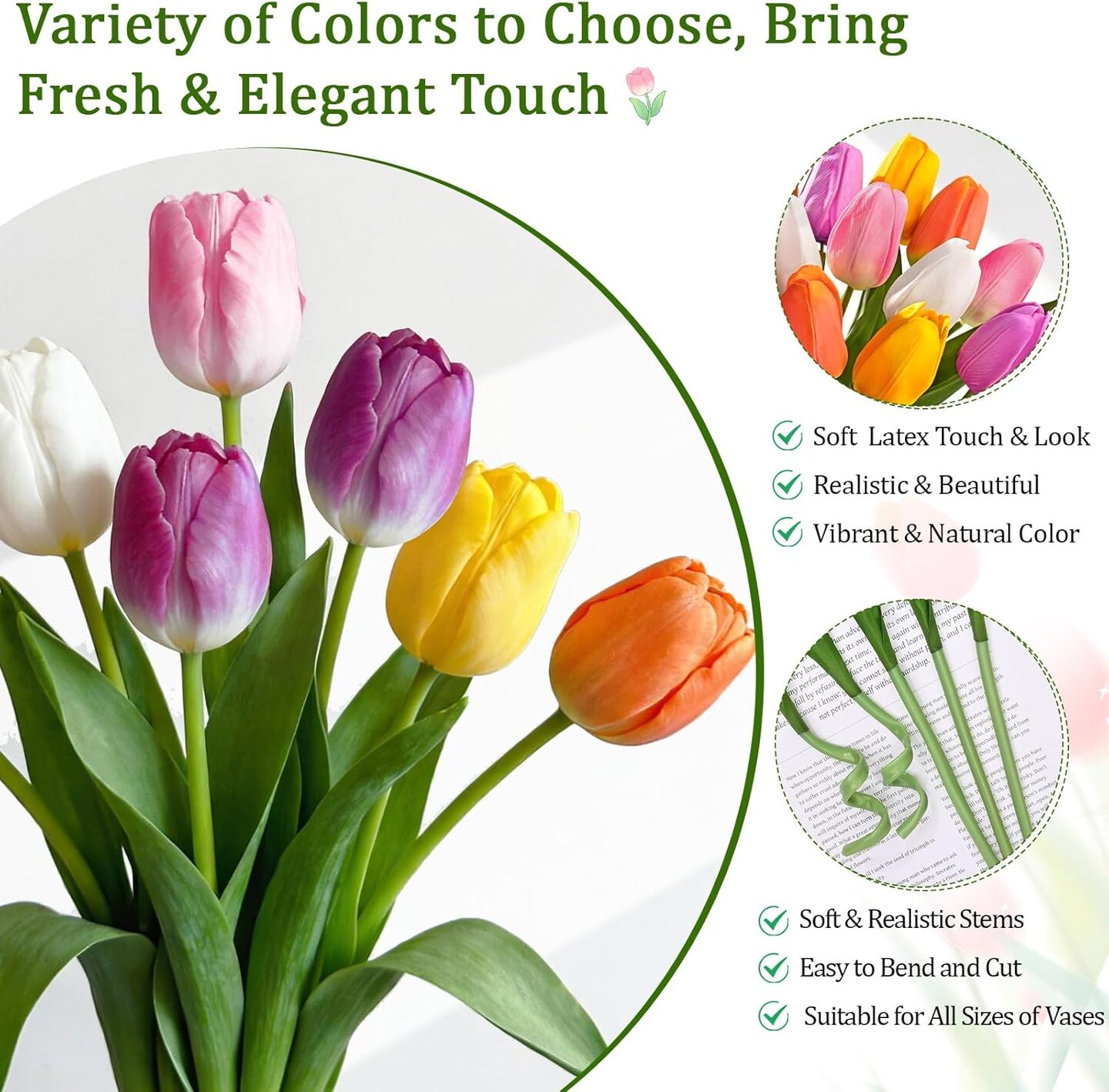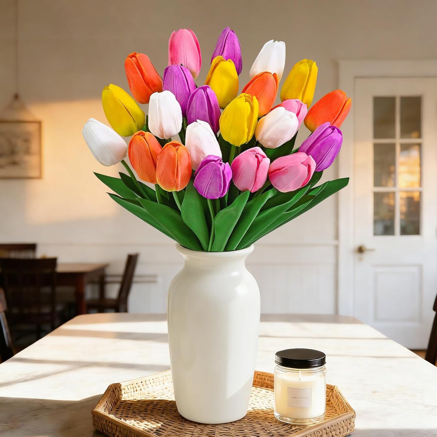 12-Pack Mixed Color Real Touch Latex Tulips – Lifelike Faux Flowers with Large Full Buds for Spring Weddings, Home Décor, Tables & Party Centerpieces