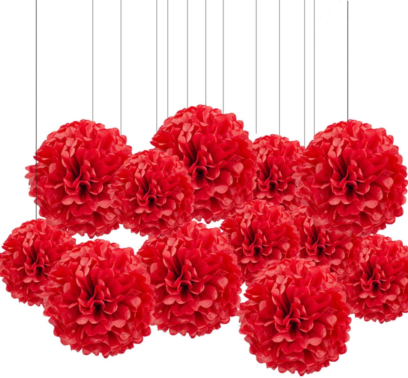 12pc Red Tissue Paper Pompoms-Hanging Paper Pom Poms Paper Flowers Ball for Party Decorative(10&12inch)