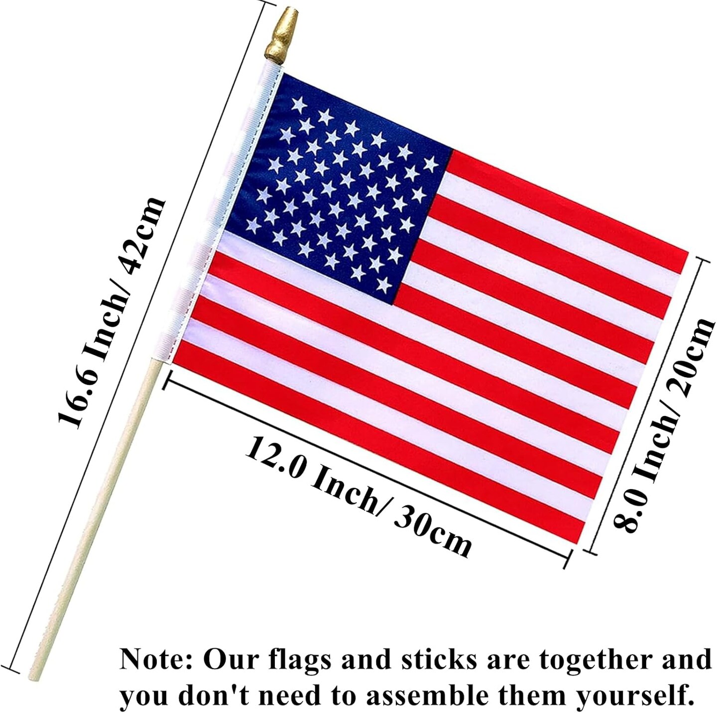 12Pcs 8x12 Inch Small American Flags on Stick, US Wood Stick Flags with Kid-safe Spear Top, American Flags for Outside 8x12″ Memorial Day, 4th of July Independence Day Decorations Veterans Parades