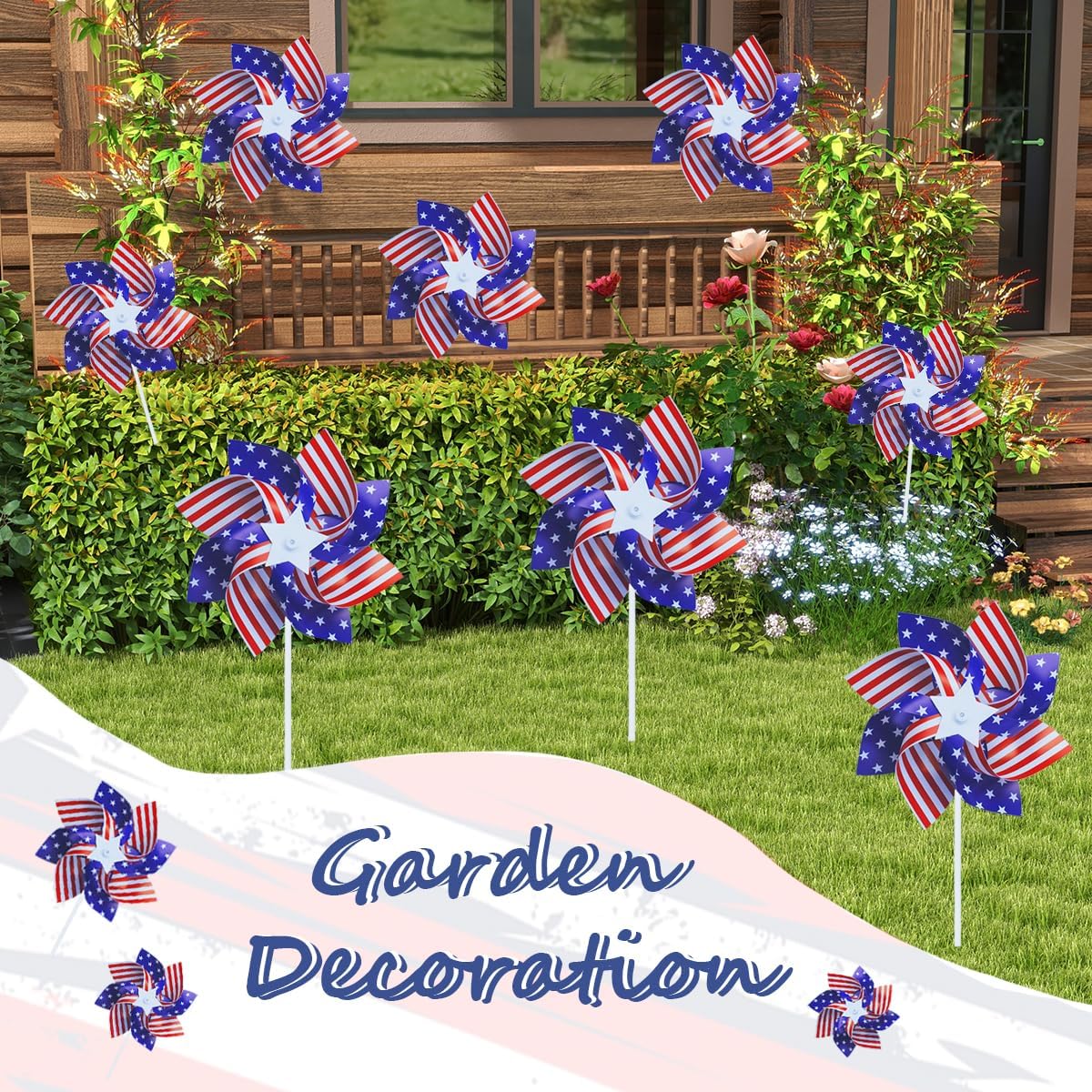 12Pcs American Patriotic Wind Spinners Red White Blue Flag Pinwheels