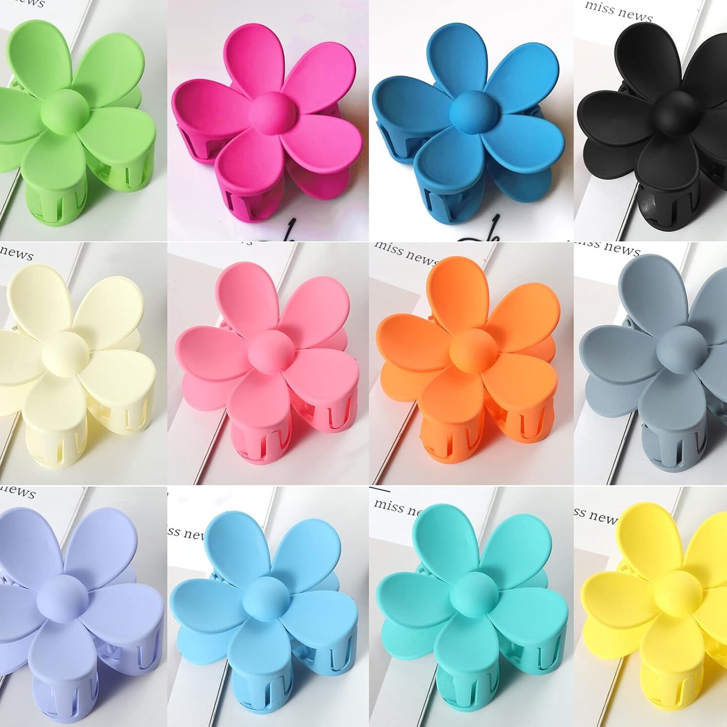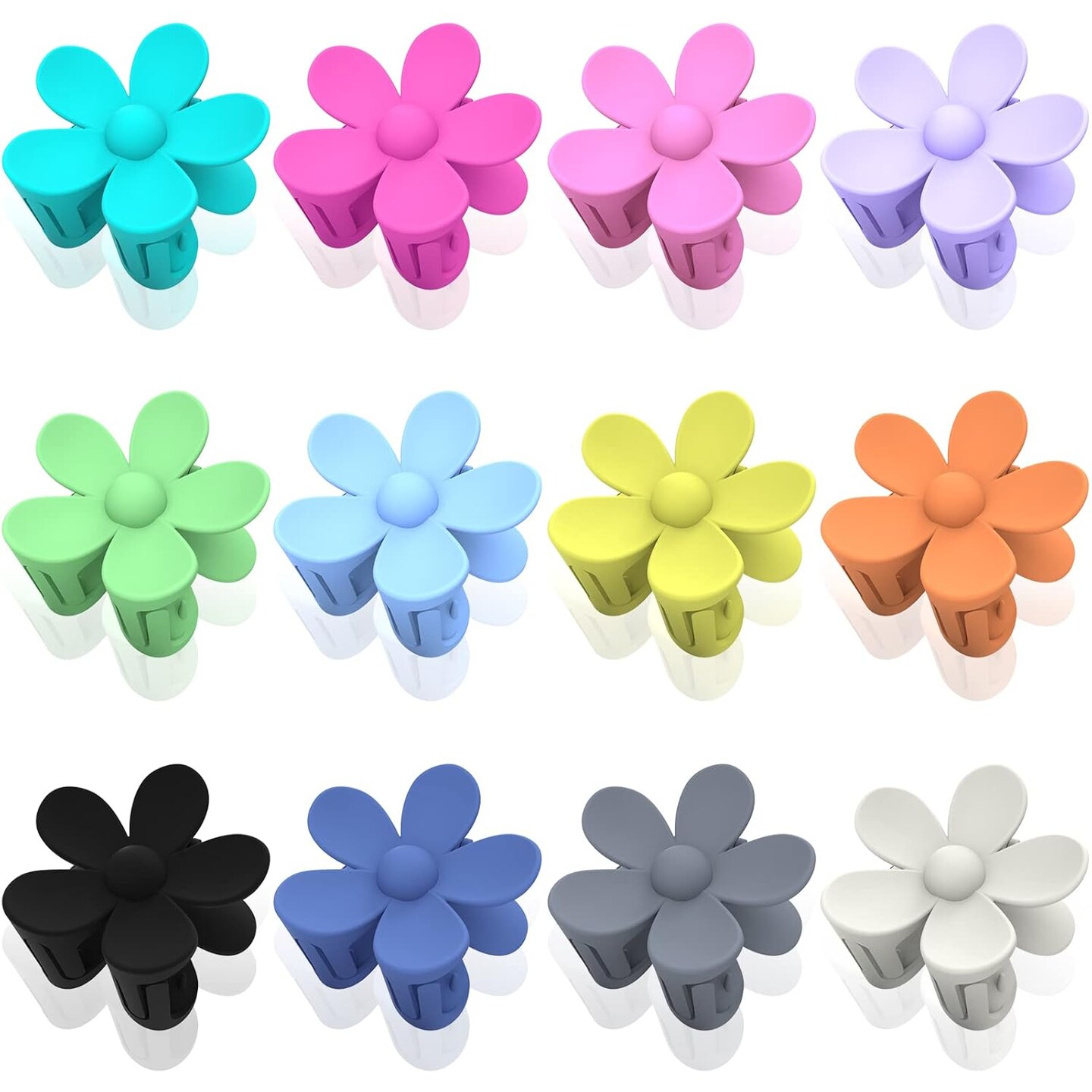 12Pcs Colorful Flower Hair Clips (Cyan, Green, Rose Red, Black, Etc.)