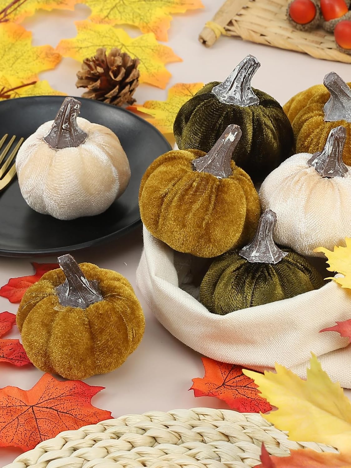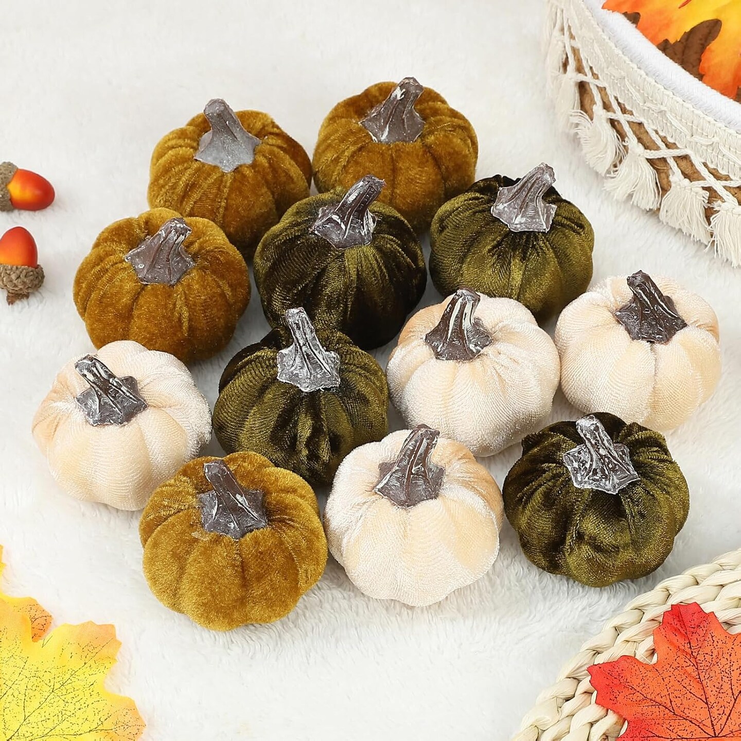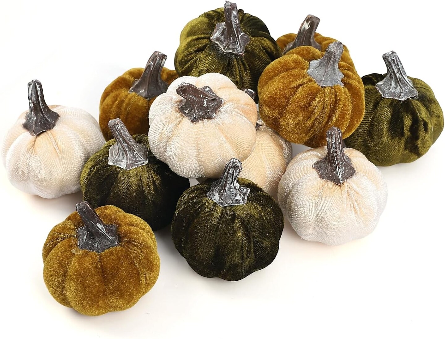 12pcs Fall Pumpkins Decor Set (Olive Green & Dark Green & Cream)
