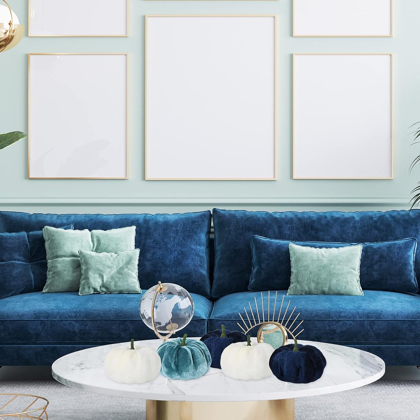 12Pcs Fall Velvet Pumpkin Blue White Tabletop Decor