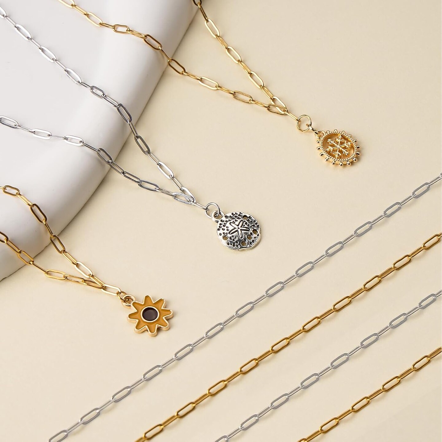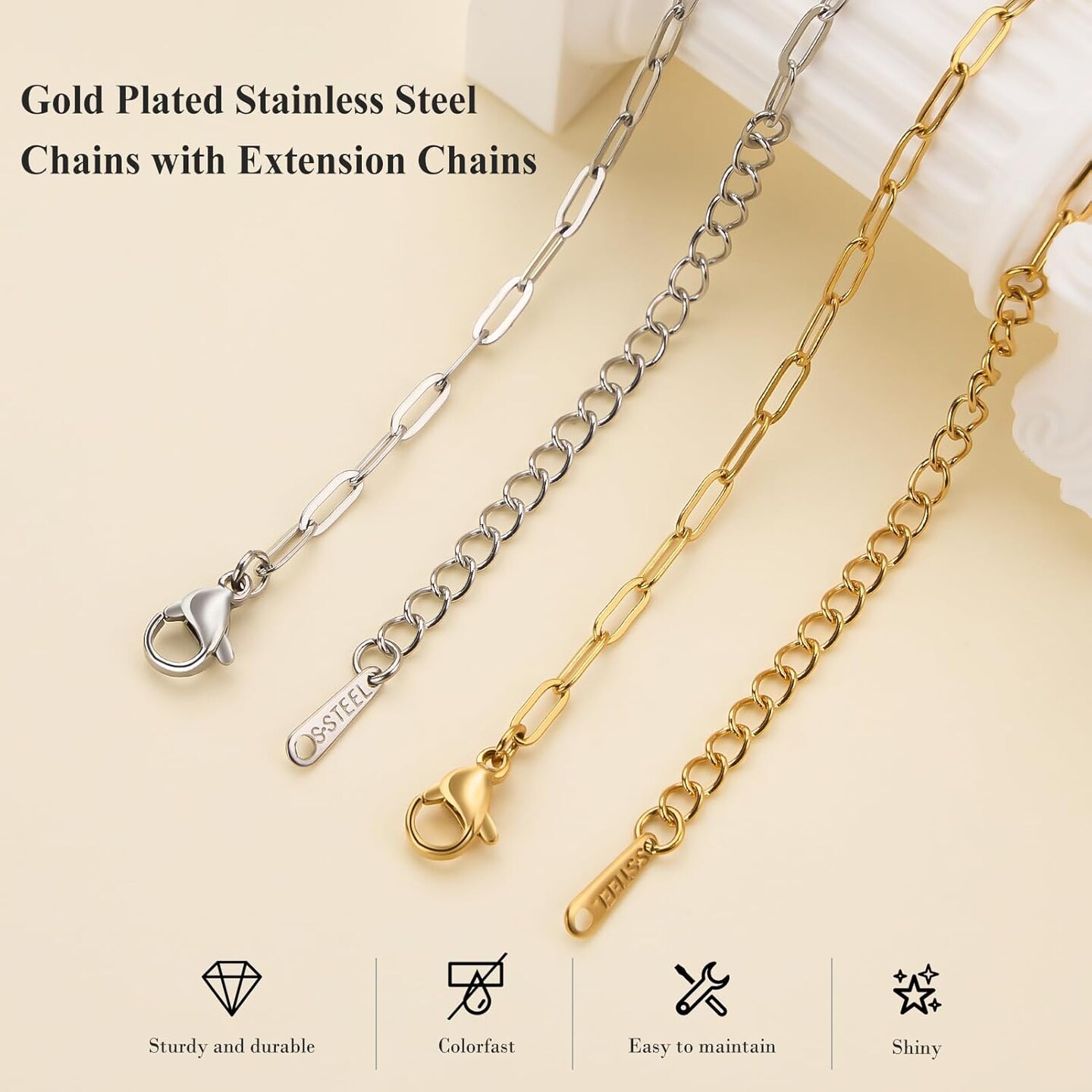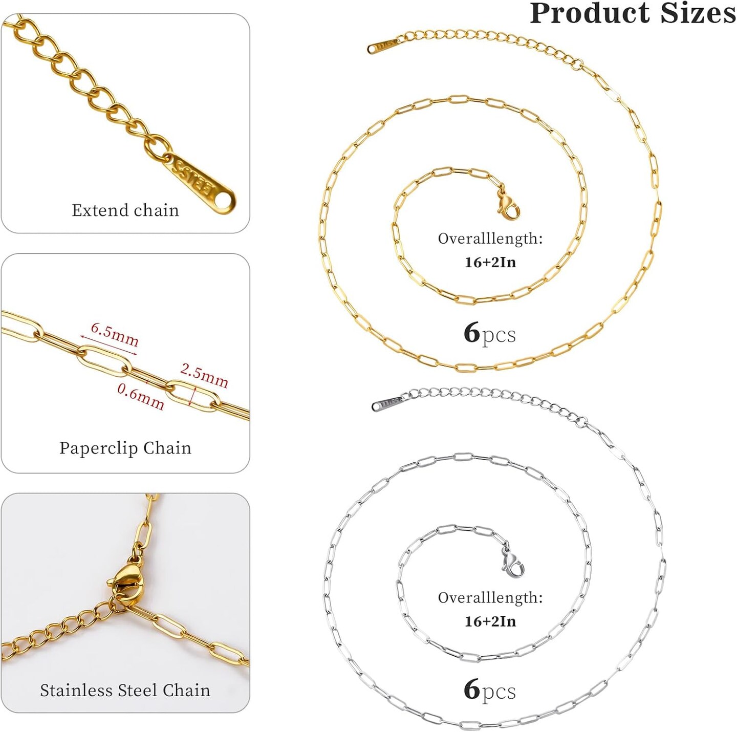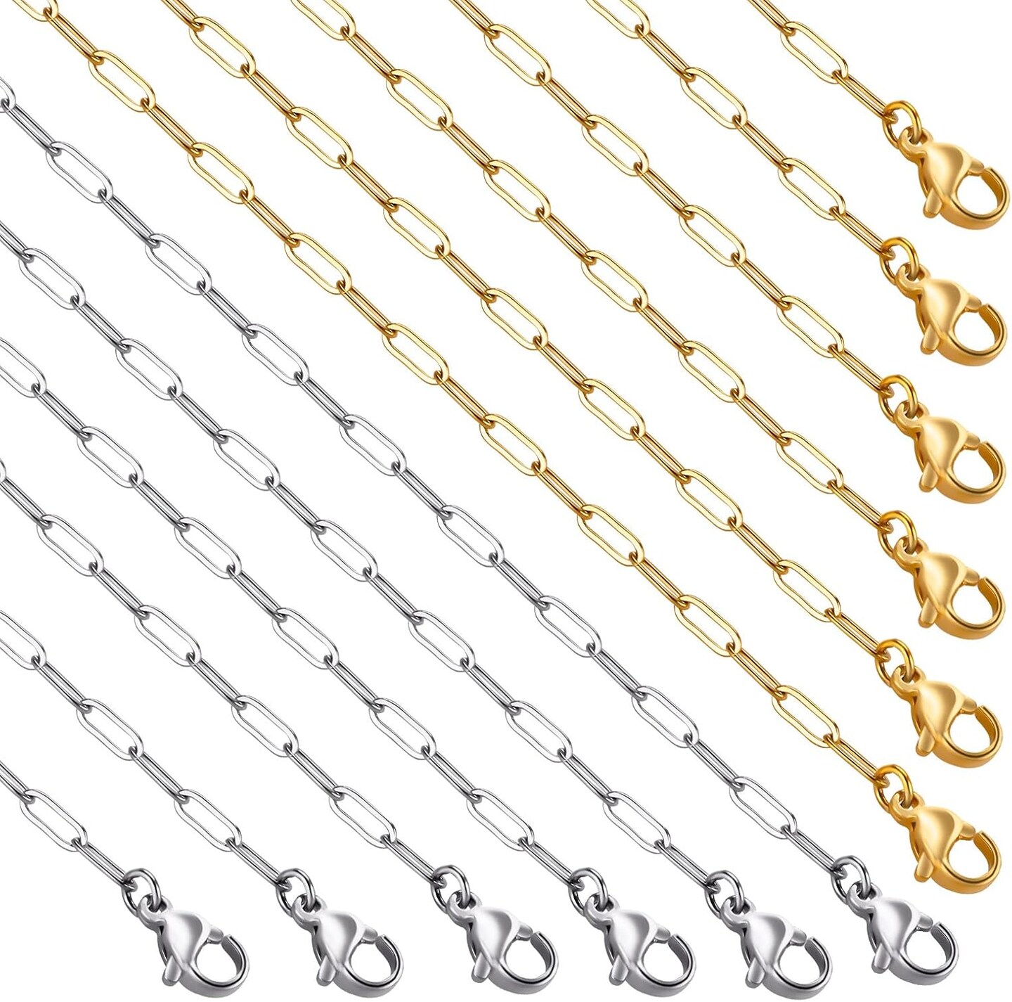 12Pcs Gold and Silver Paperclip Chains for Jewelry Making 16 Inch Stainless Steel Chain Bulk for Women and Men