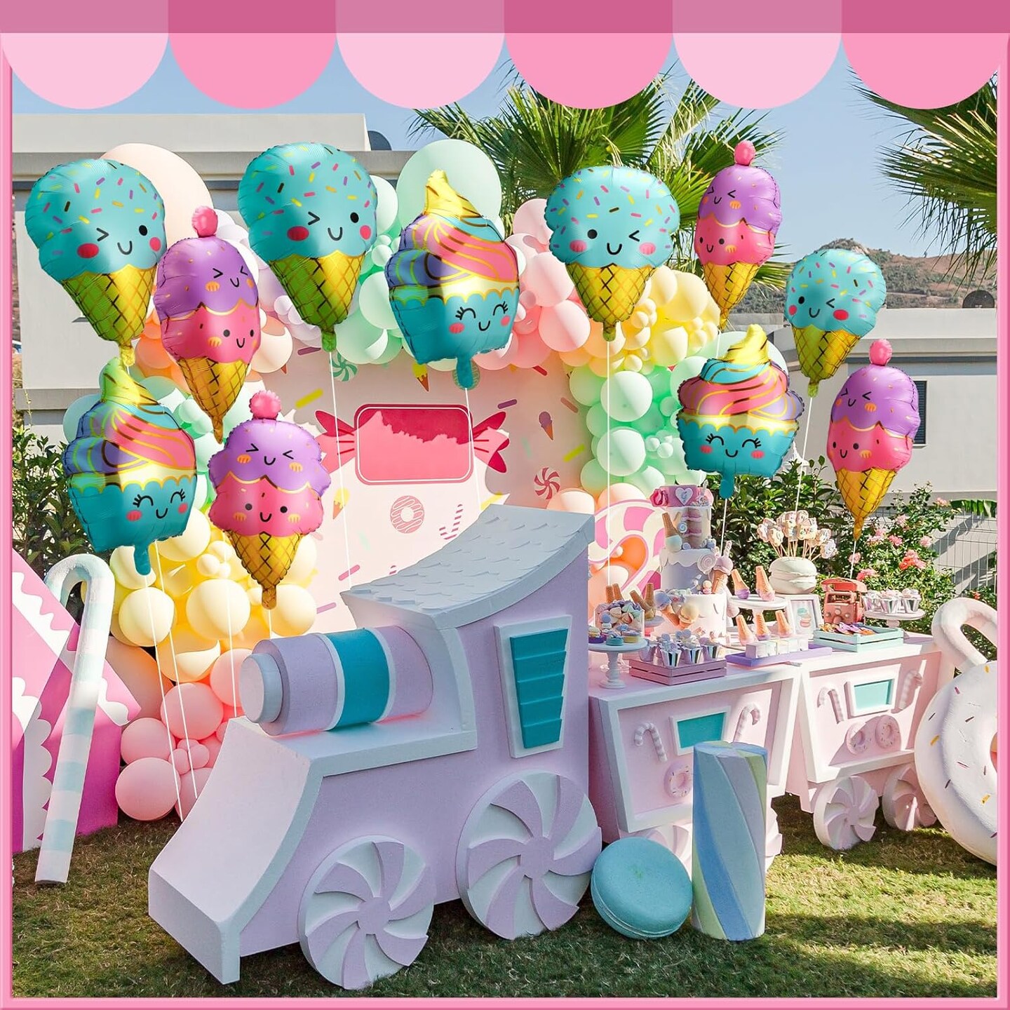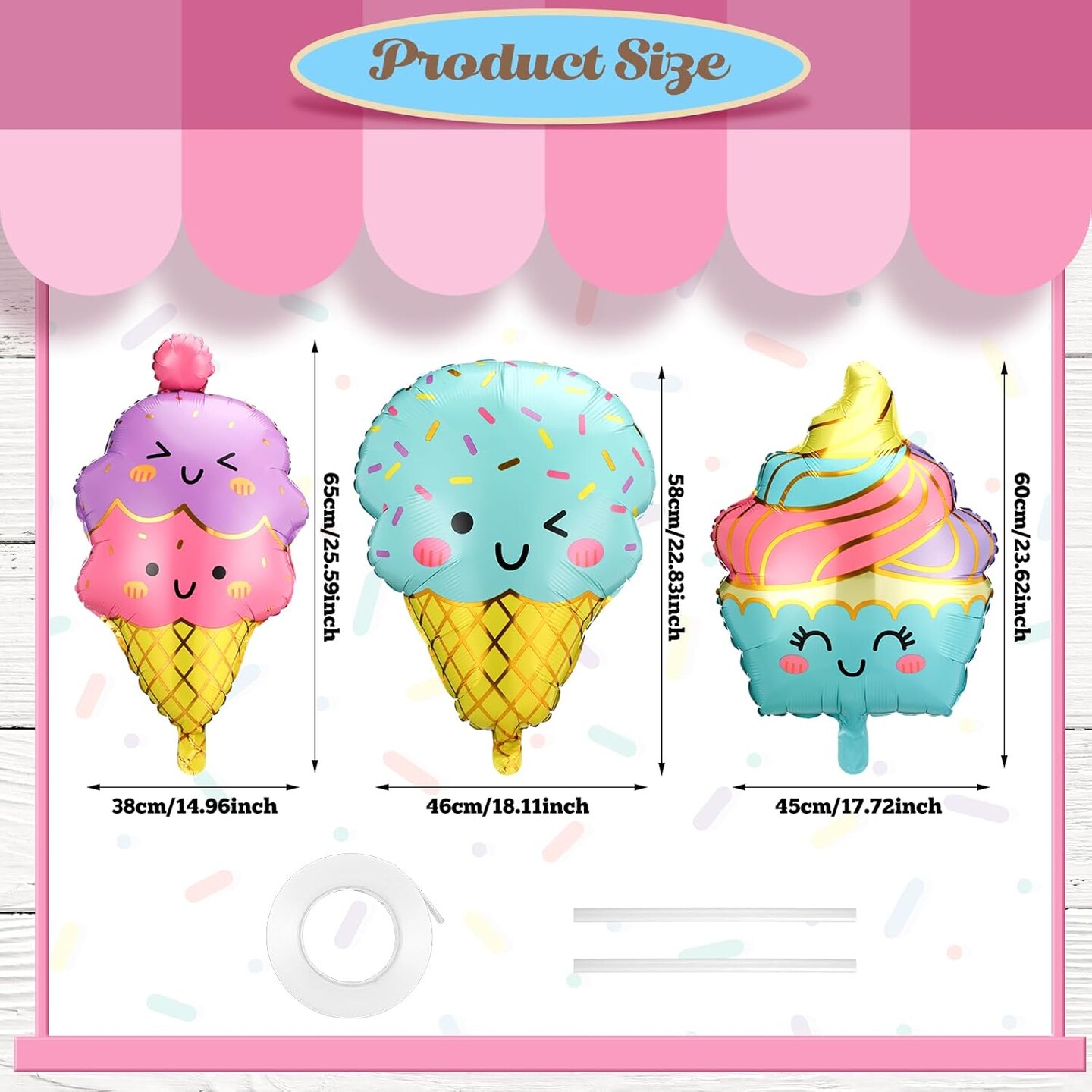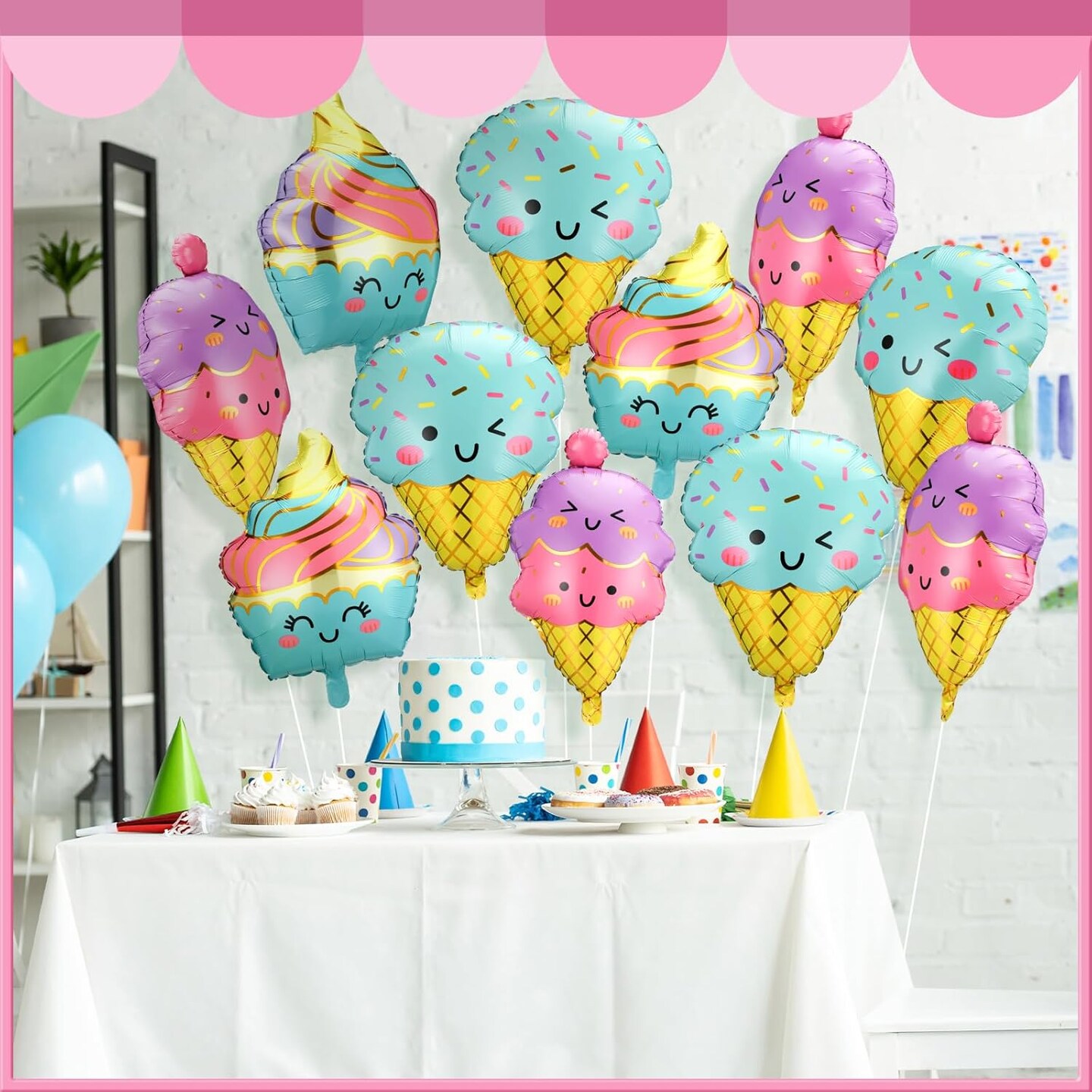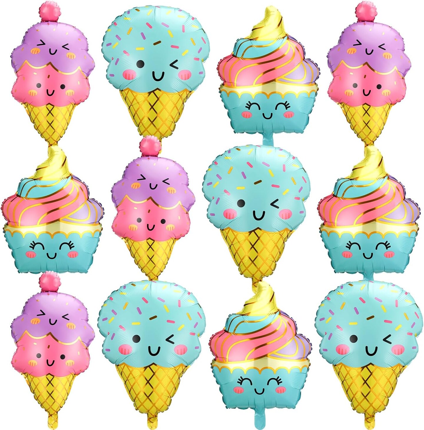 12pcs Large Ice Cream Balloons Foil Balloons(Pink, Purple, Blue, Yellow)