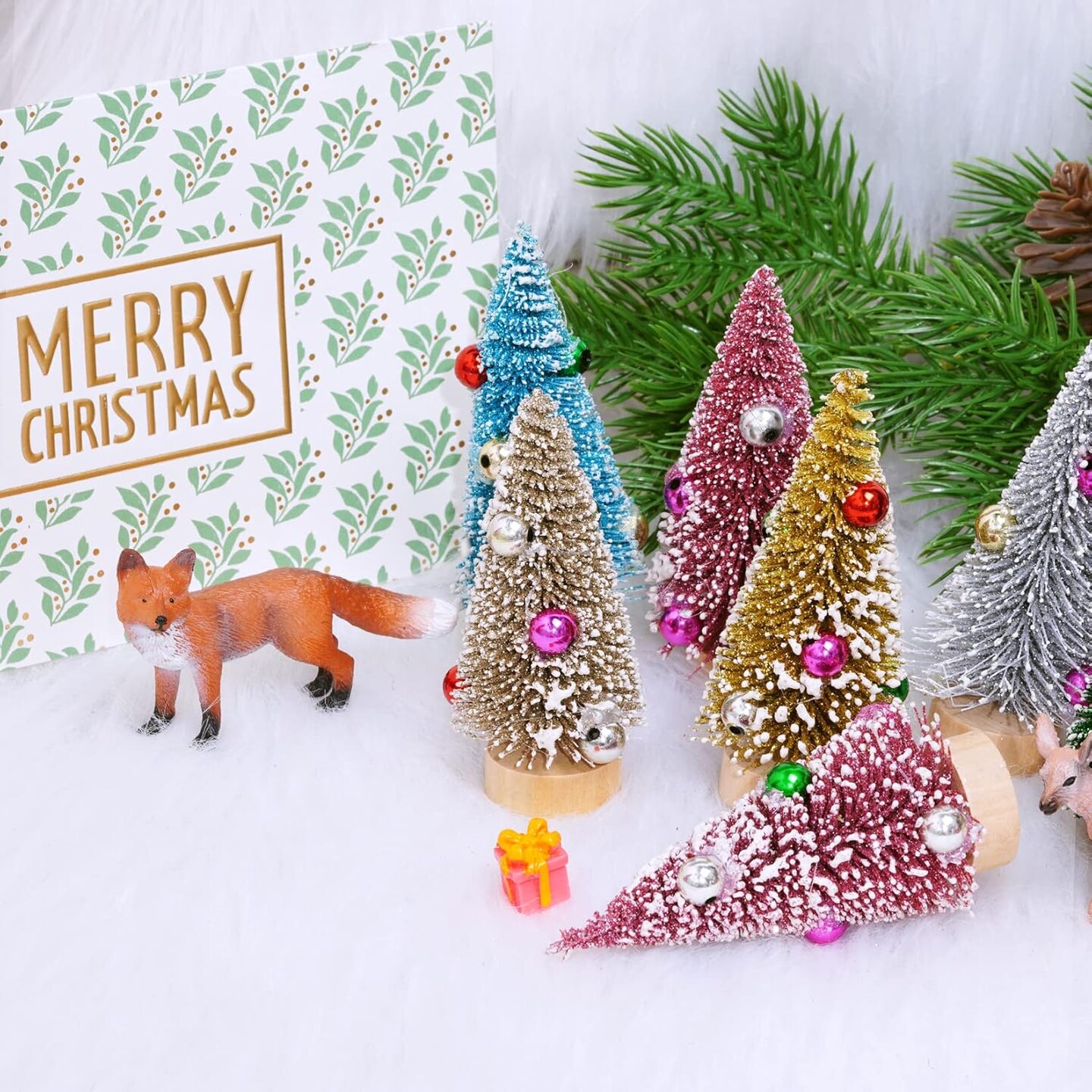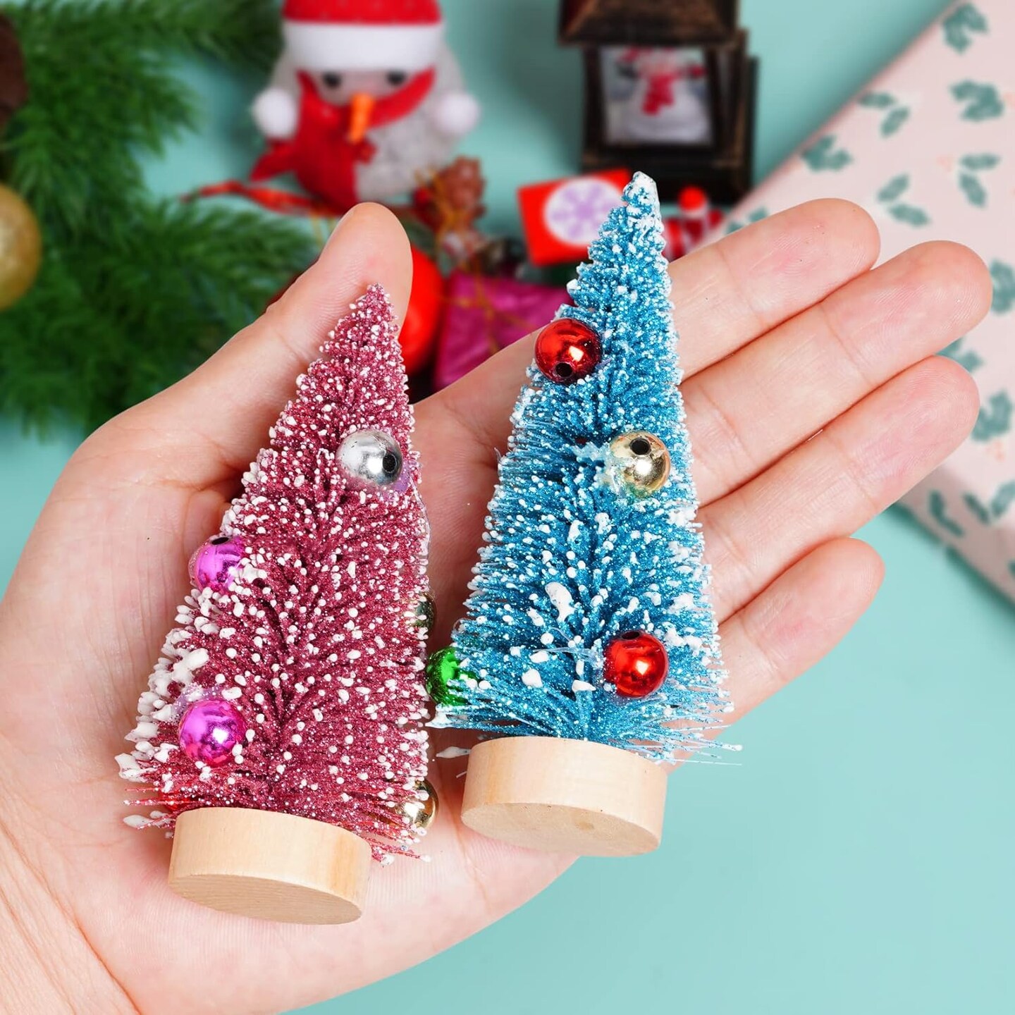12Pcs Mini Christmas Trees Small Sisal Trees Mini Pine Trees (Multicolor) 4"D x 0.2"W x 2"H