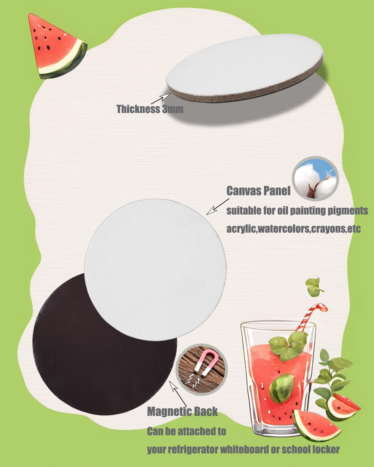 12PCS Mini Magnetic Canvas Panel for Painting(White)