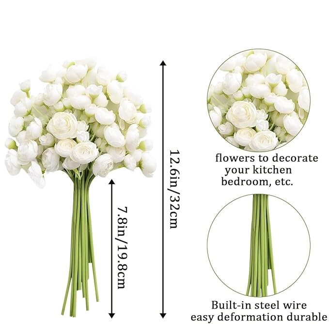 12pcs Ranunculus Artificial Flowers Faux Silk Mini Ranunculus Fake Rose Flowers Wedding Filler Flowers DIY Pink Bouquets, Centerpieces, Bridal Shower Decorations Arrangements