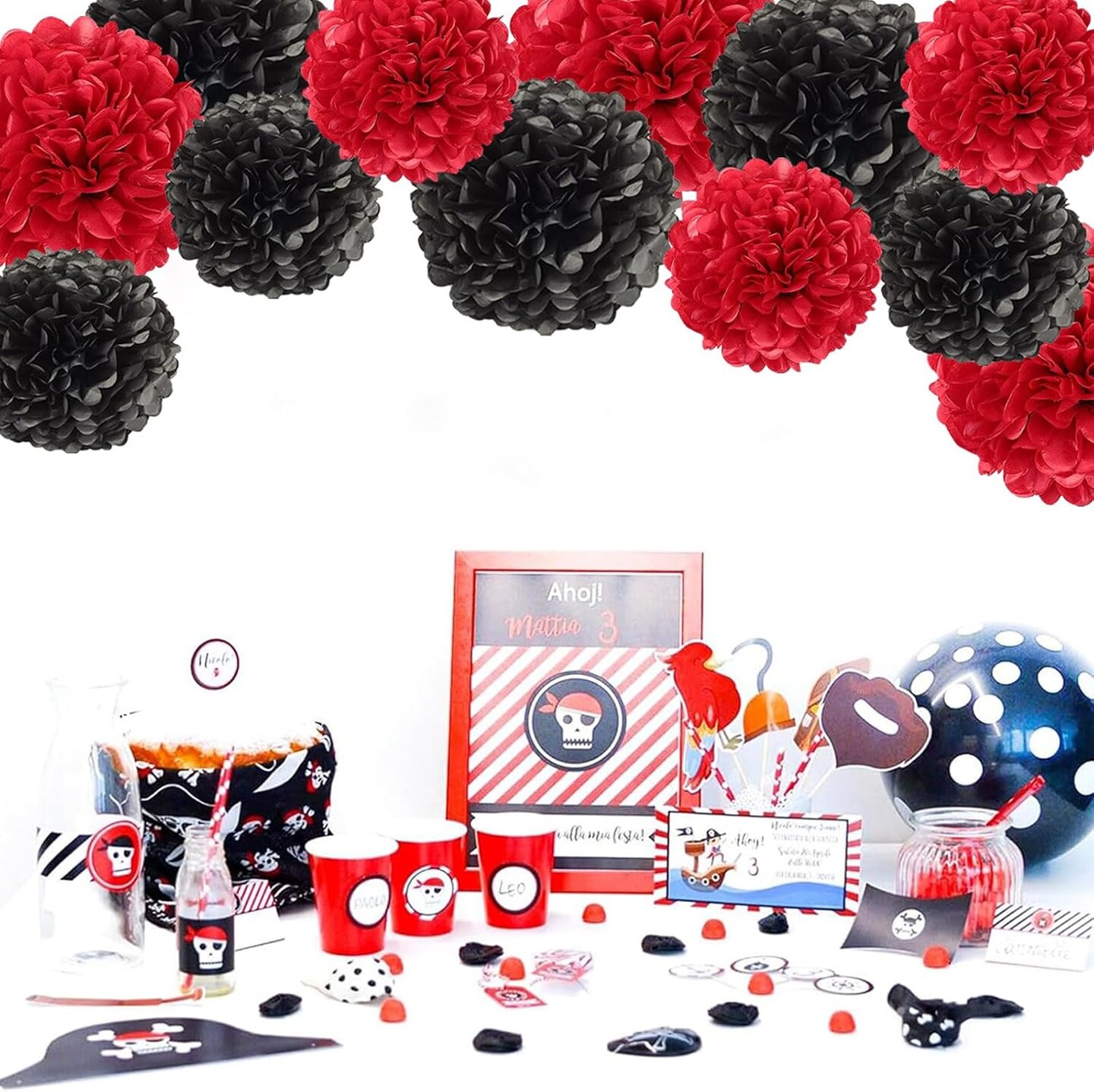 12Pcs Red Hanging Tissue Paper Pom Poms,Pompoms Flowers for Ceiling Party Decorations