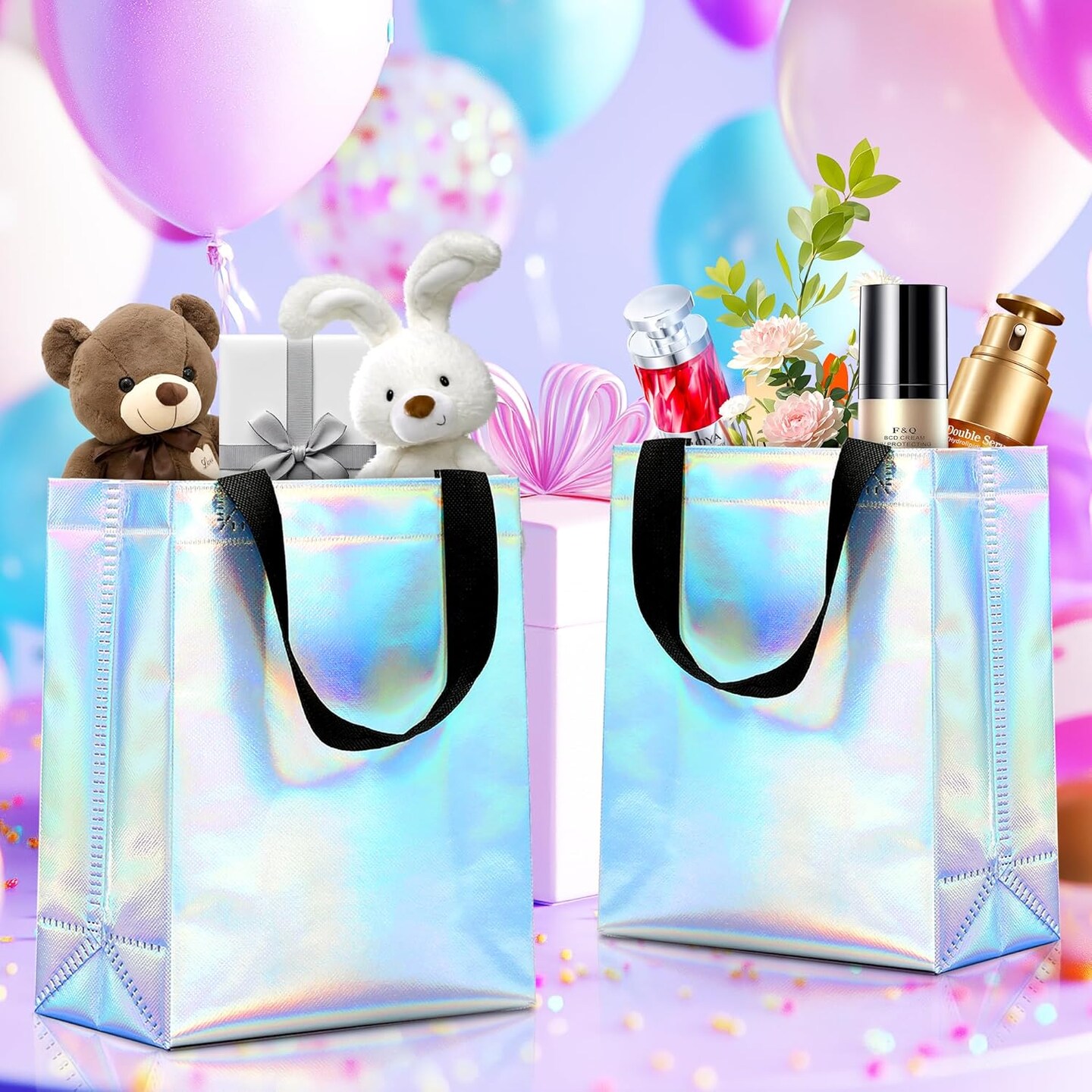 12pcs Reusable Gift Bags(Includes Tissue Paper) Gift bag with handle Birthdays Parties Holidays Weddings Medium 10x4x8in rainbow Gift Bags