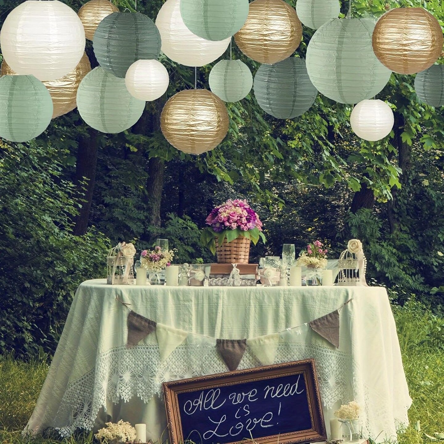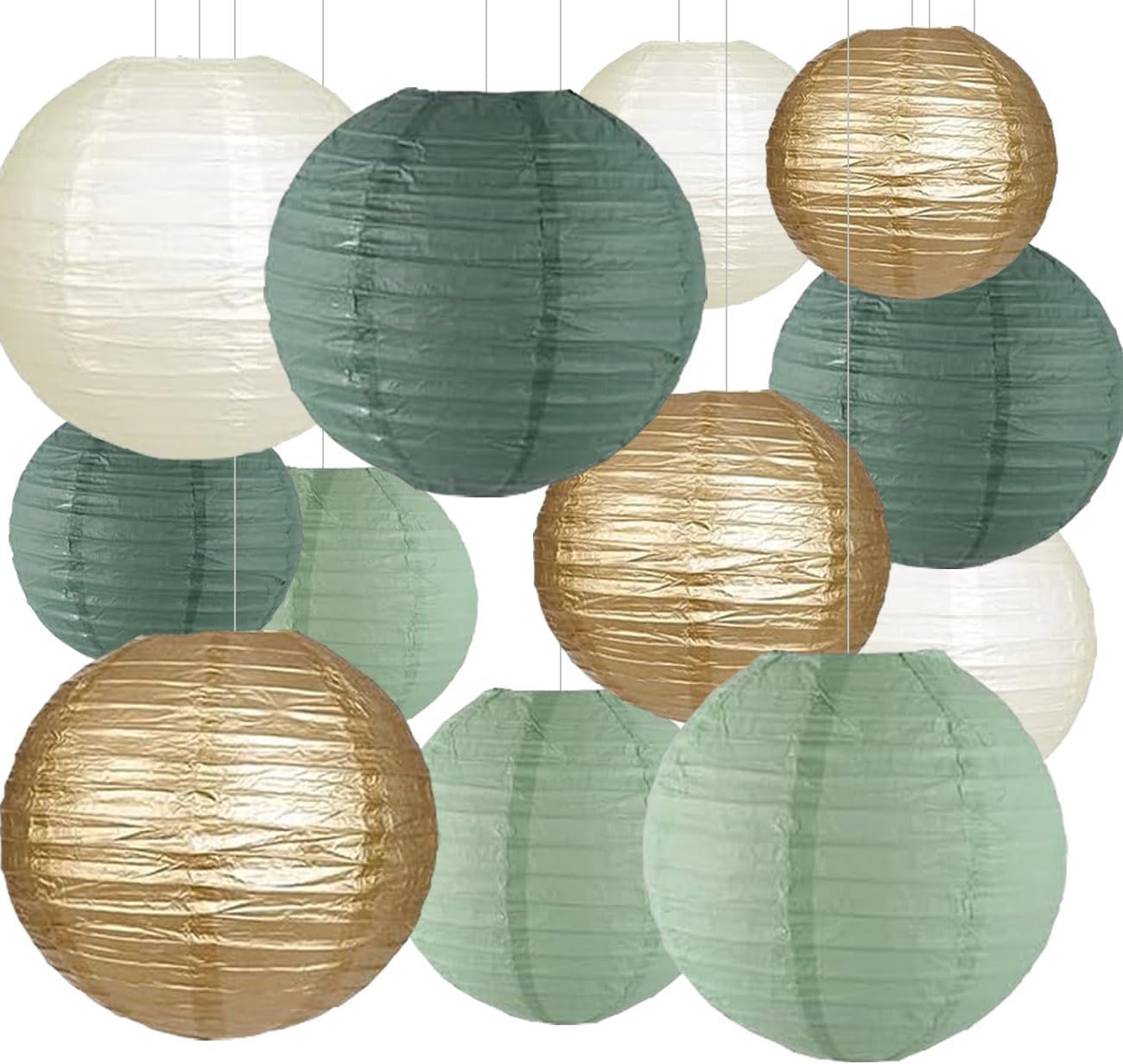 12pcs Sage Green Gold Paper Lanterns(Sage Green Gold)