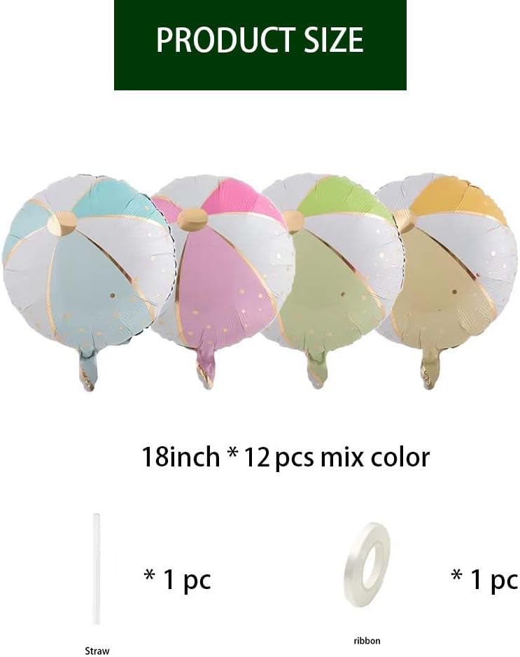 12PCS Summer Beach Ball Shaped Mylar Balloons (18 Inches)