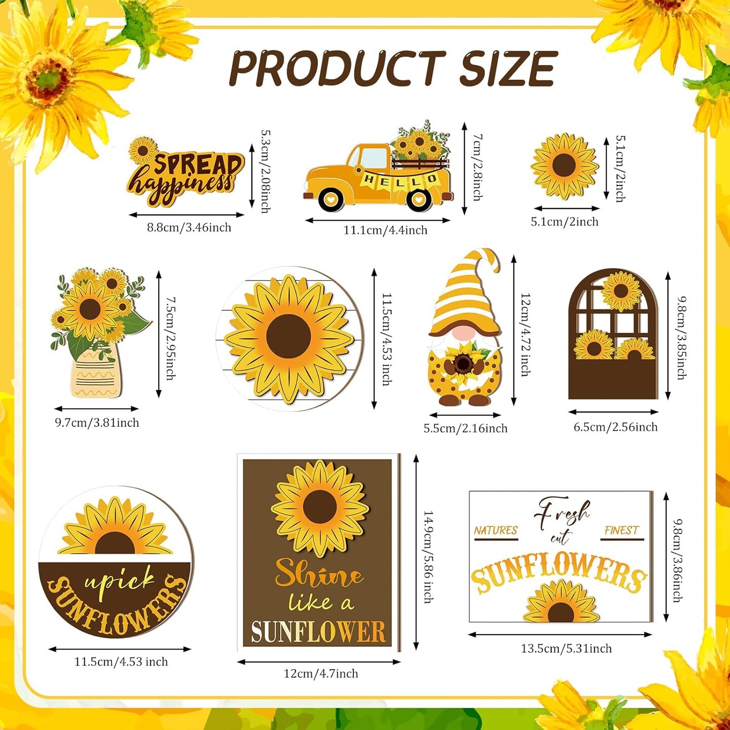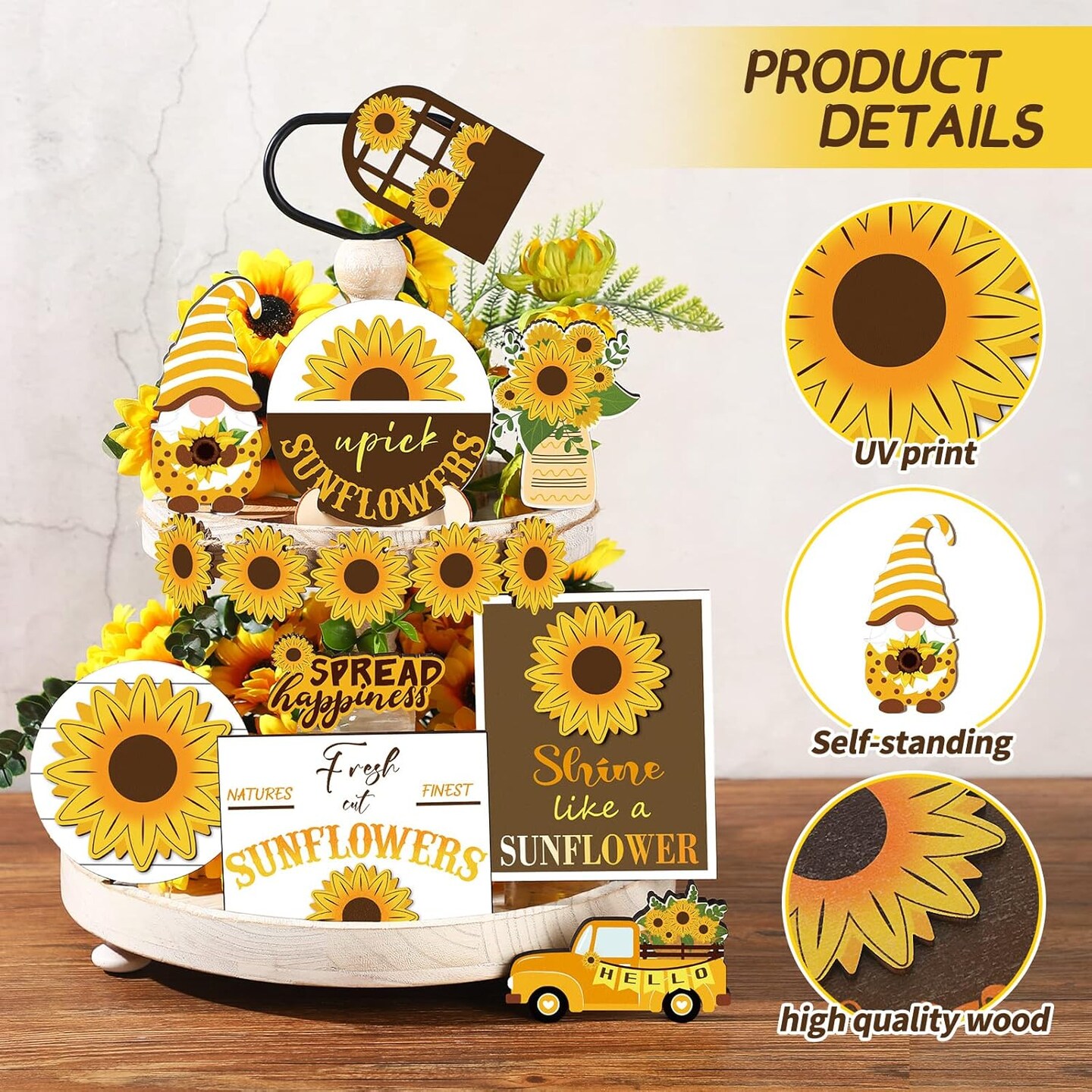 12PCS Sunflower Tiered Tray Decor Set – Summer Rustic Farmhouse Kitchen Decor, Wooden Sunflower Gnome Signs for Tiered Tray, Party & Home Decoration