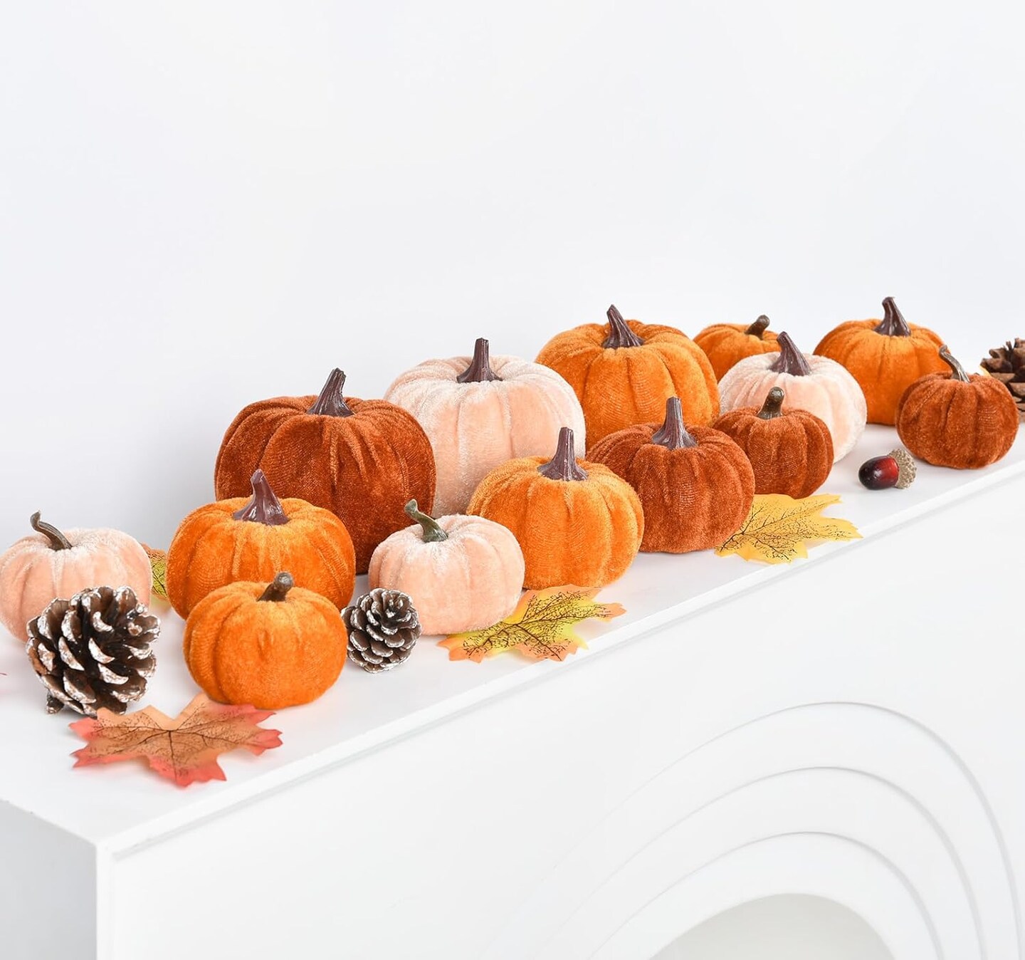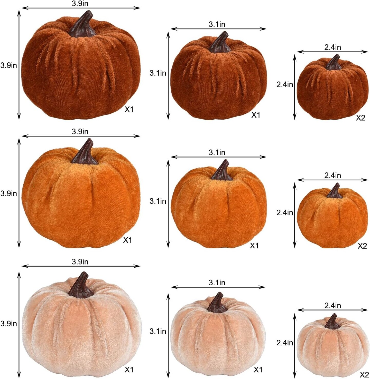 12Pcs Velvet Fall Pumpkins Set - Assorted Sizes