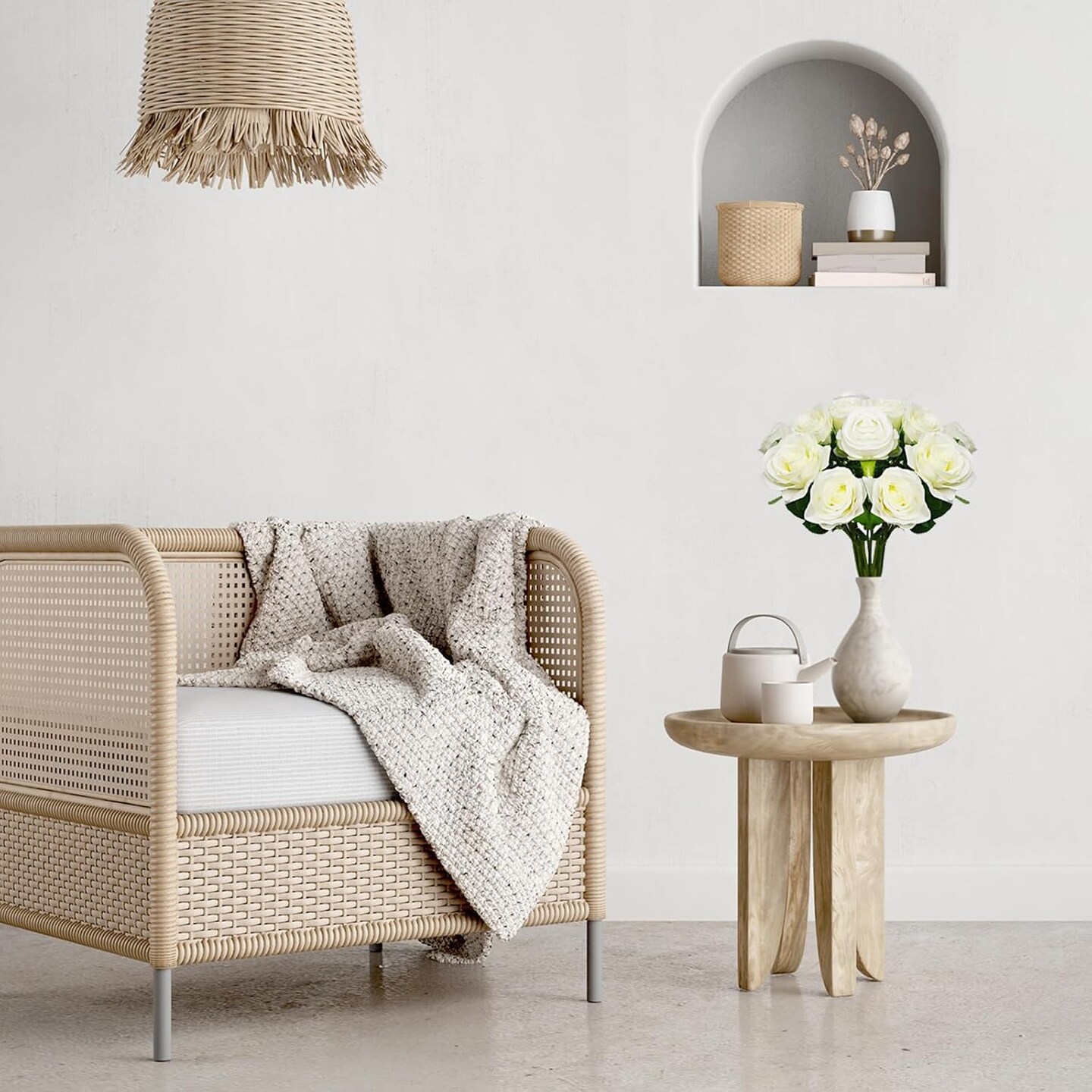 12Pcs White Artificial Roses Bouquet with Long Stems