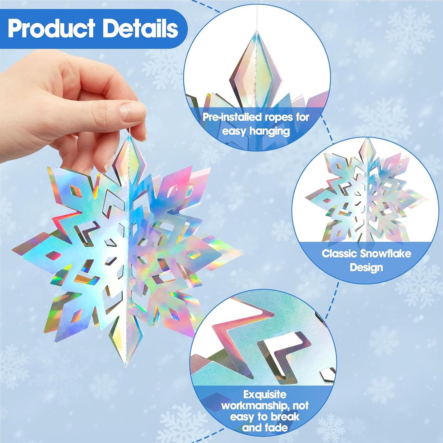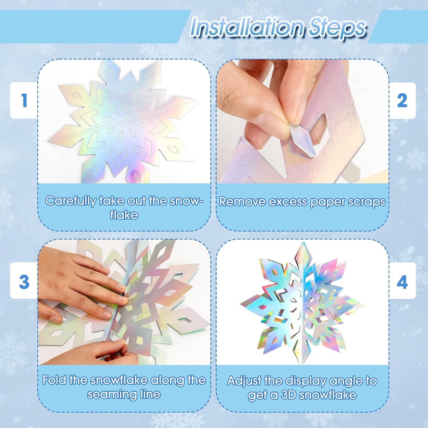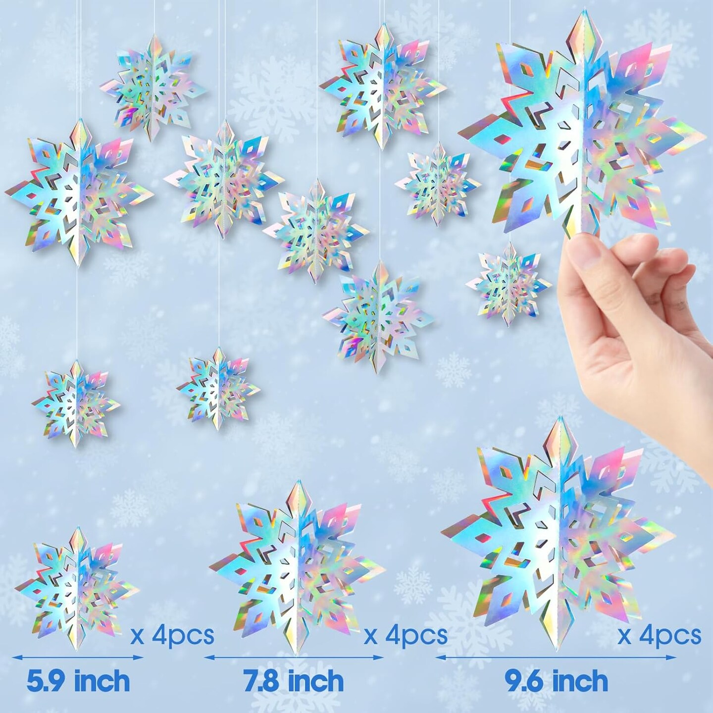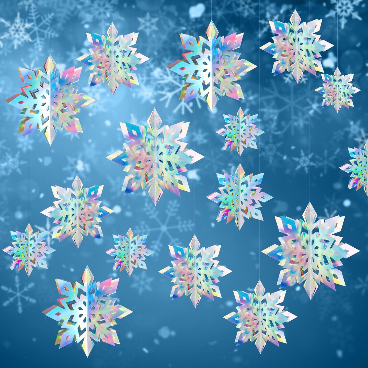 12Pcs Winter Snowflake Ornaments - Iridescent