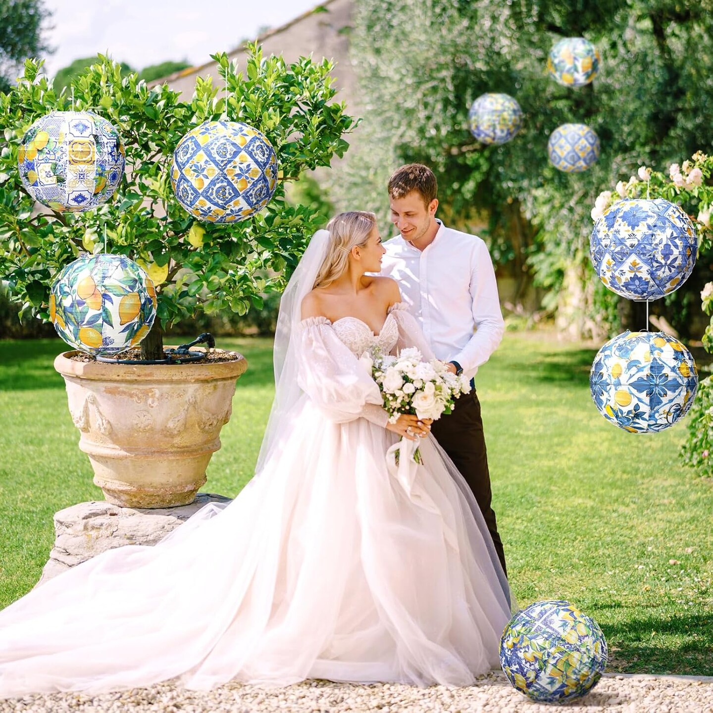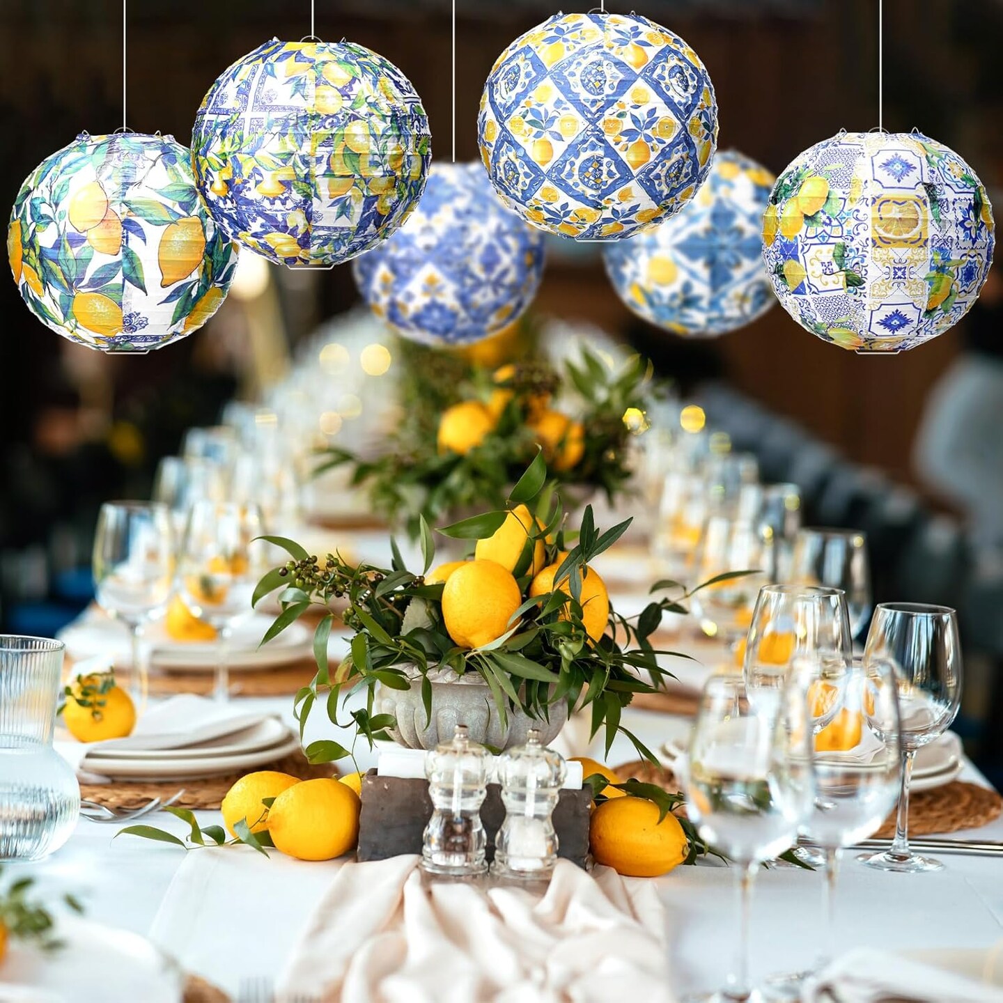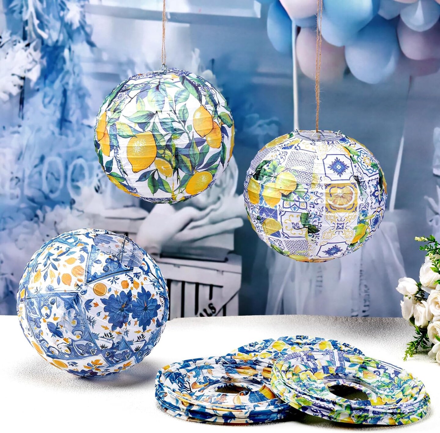 12-Piece 8-Inch Capri Lemon Paper Lanterns – Blue and Yellow Hanging Lanterns for Indoor/Outdoor Lemon-Themed Birthday, Tea Party, Wedding, or Baby Shower Decorations