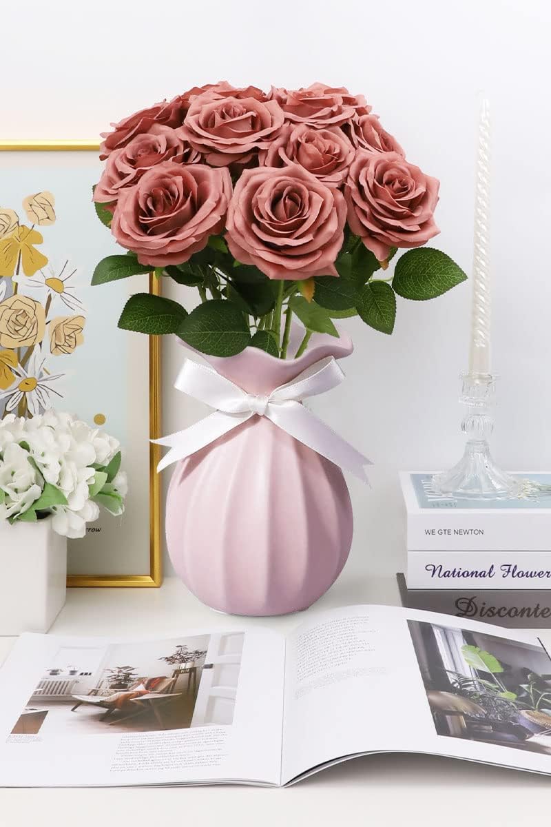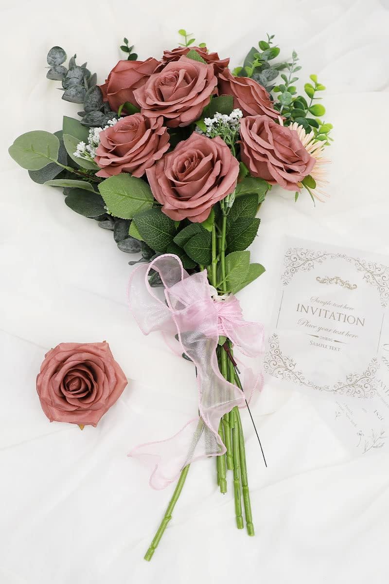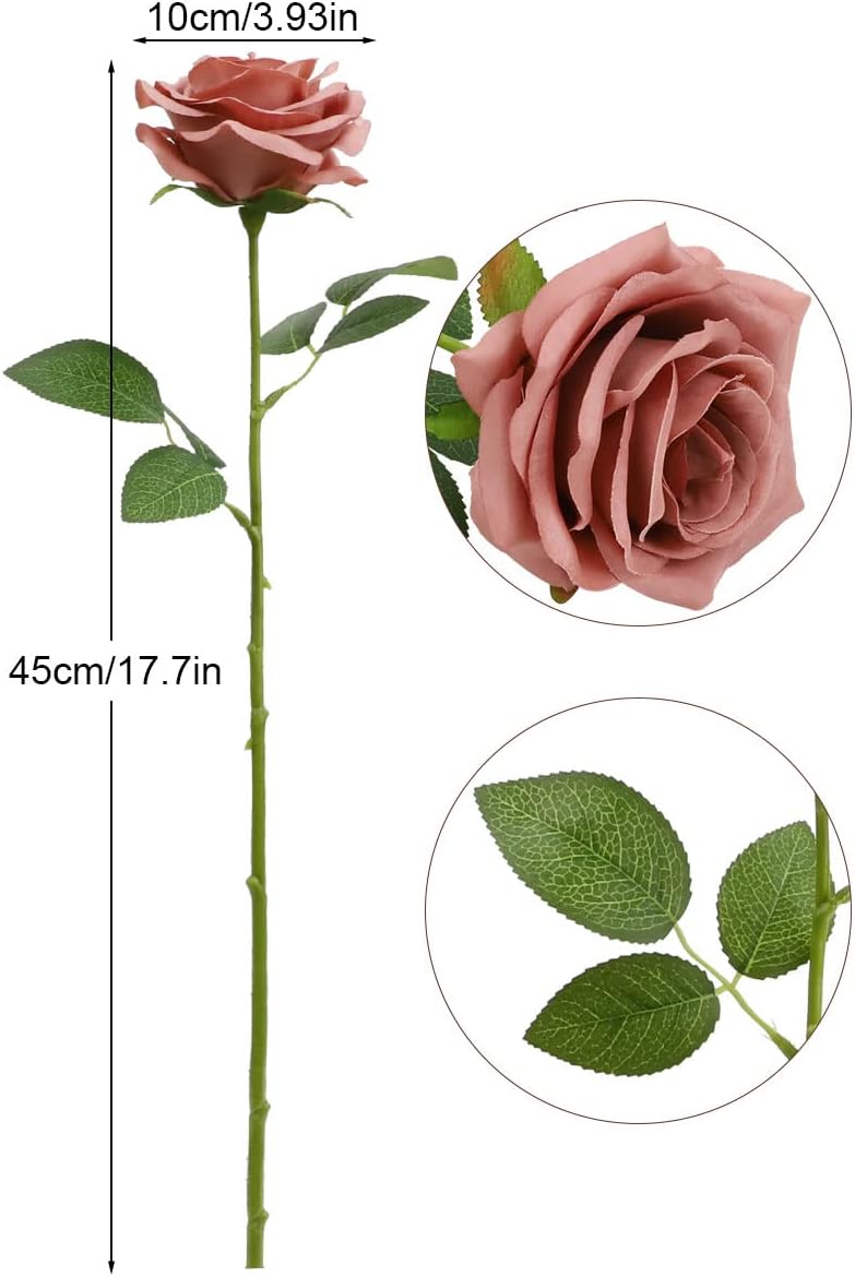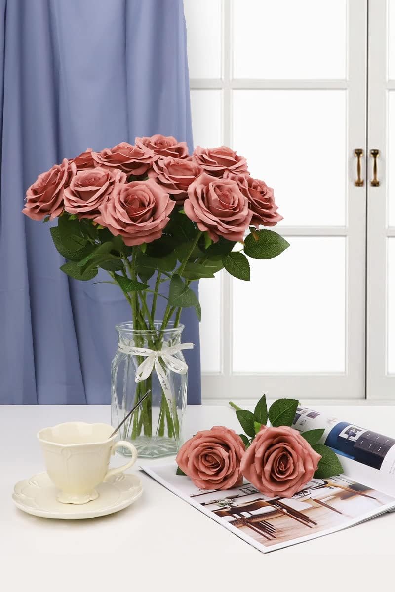 12-Piece Dusty Rose Artificial Roses – Long Stem Silk Flowers for Wedding Bouquets, Centerpieces, Party & Home Decor