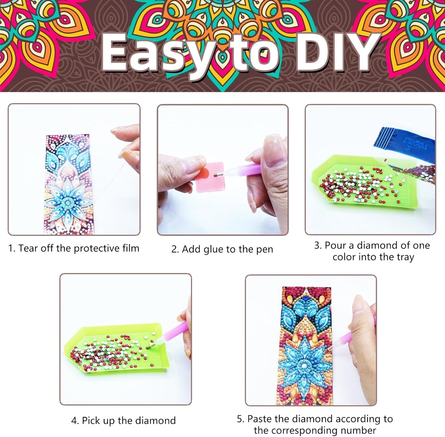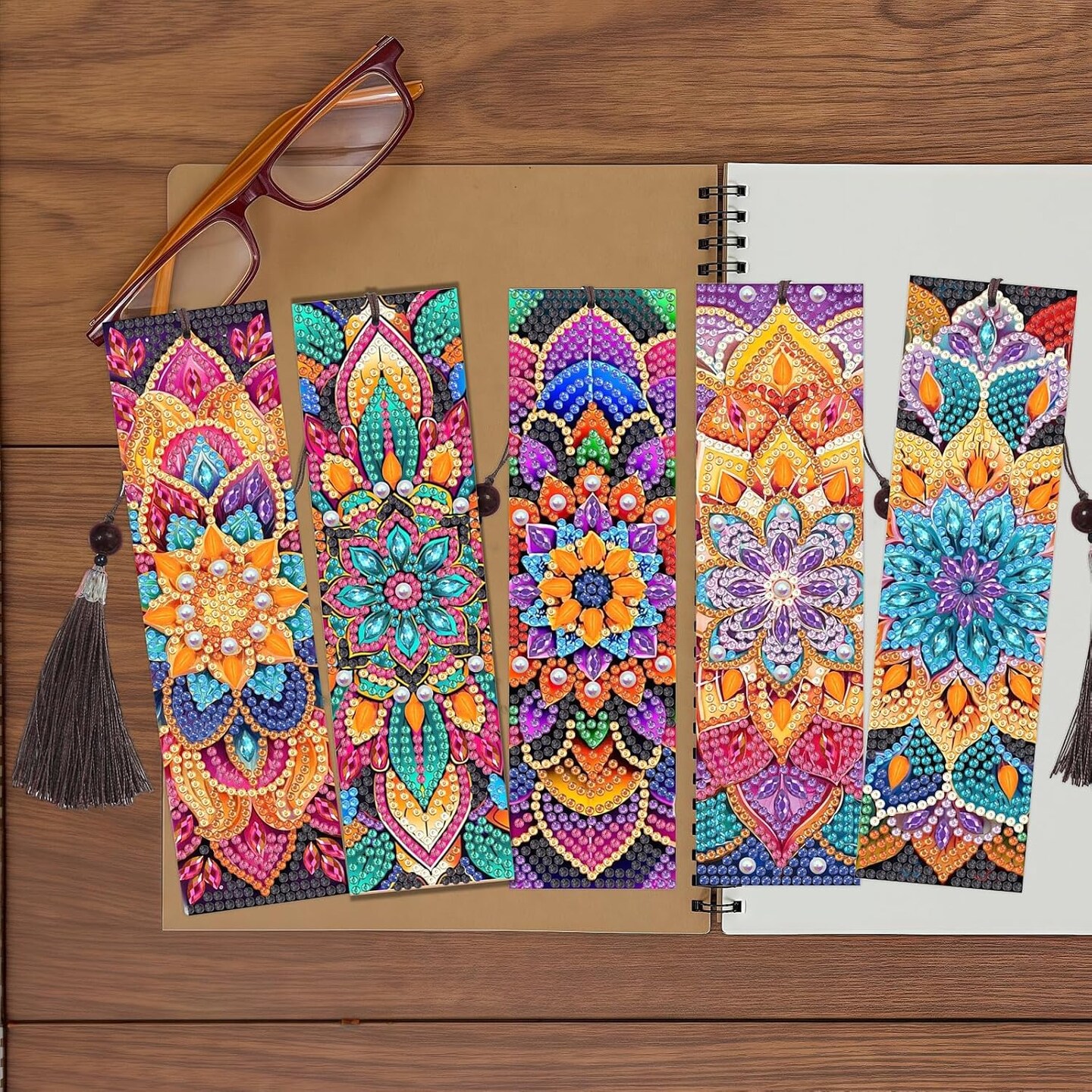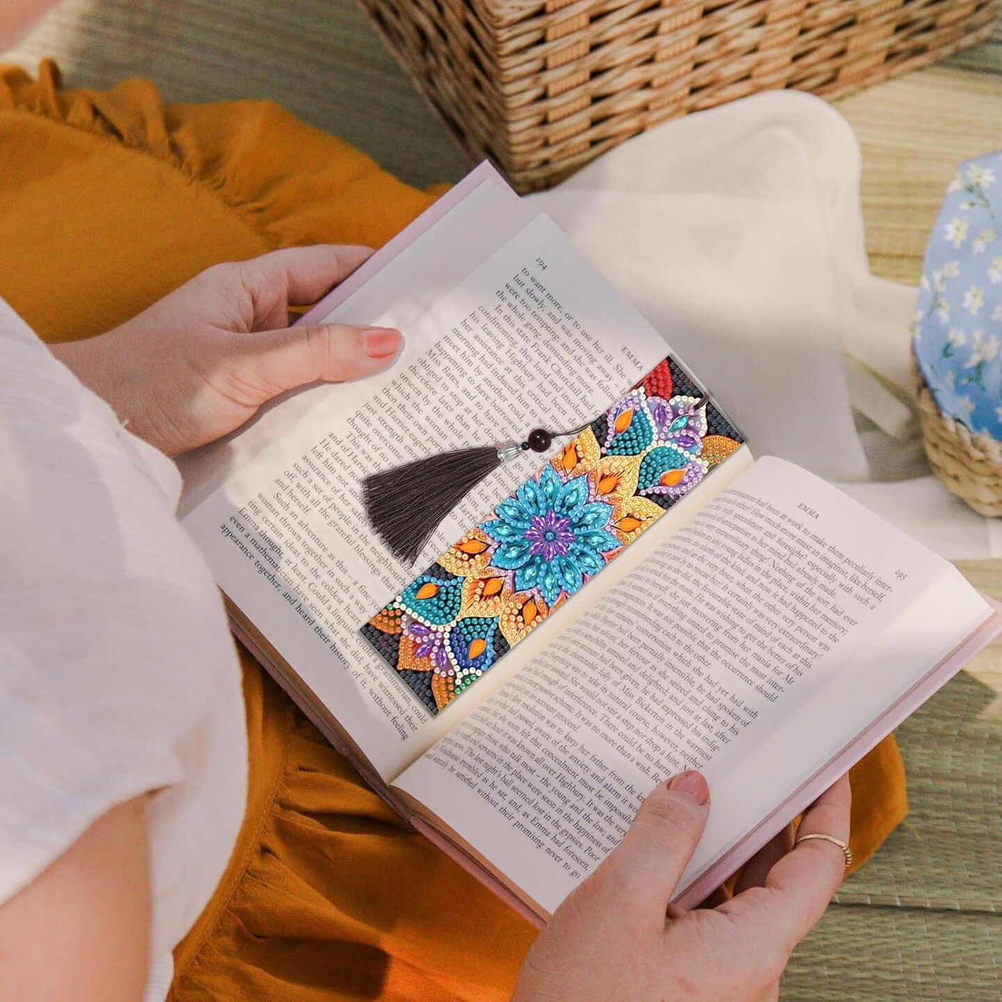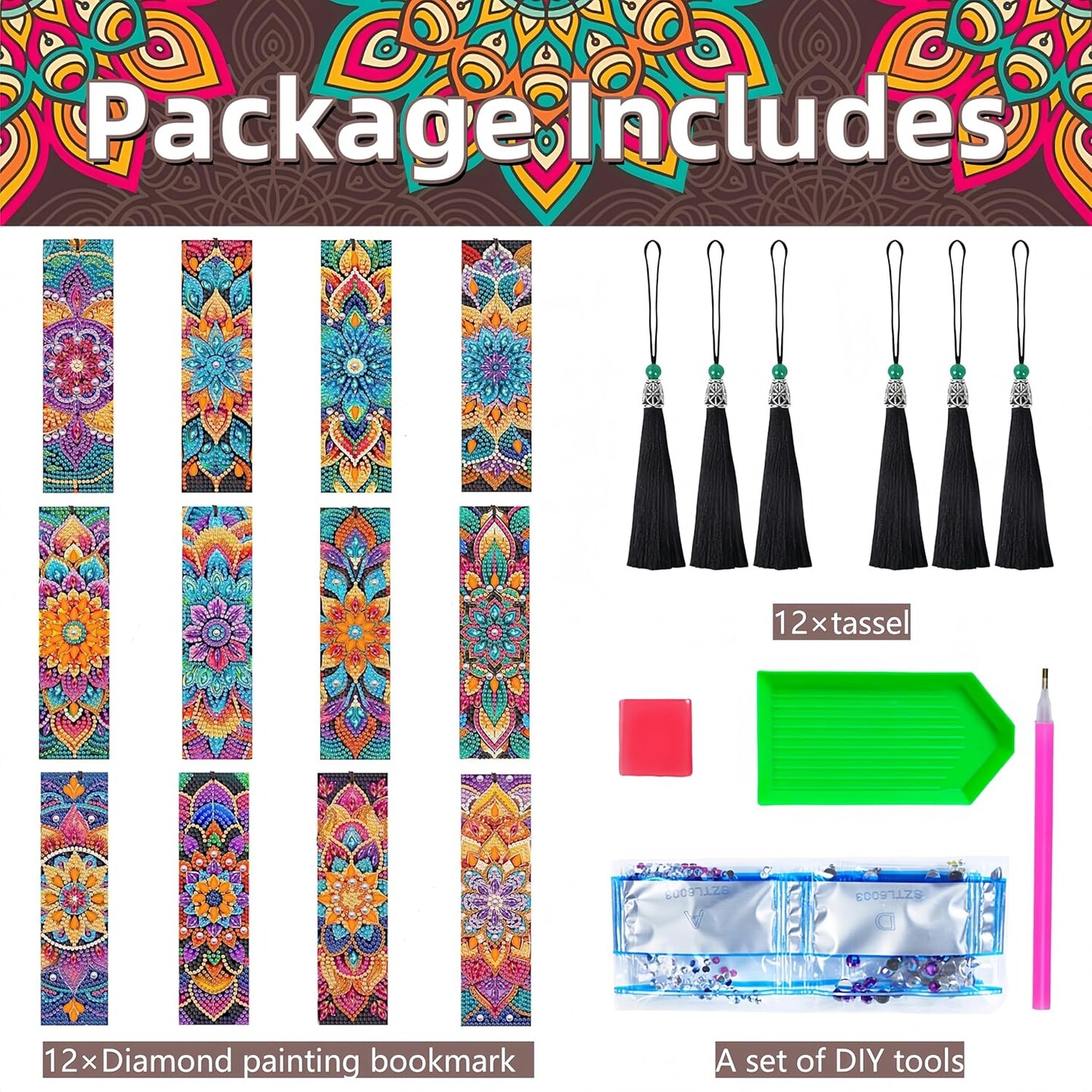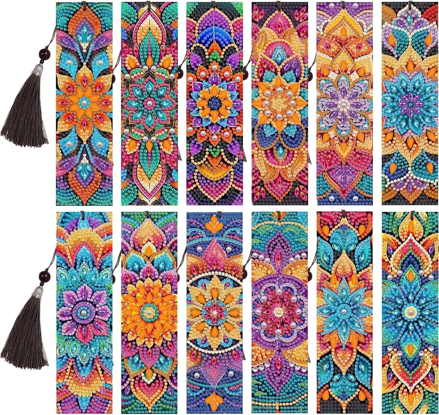 12-Piece Mandala Diamond Painting Bookmarks – DIY Diamond Art Kit for Adults & Beginners – Creative Craft Gifts with Tassels, Book Décor