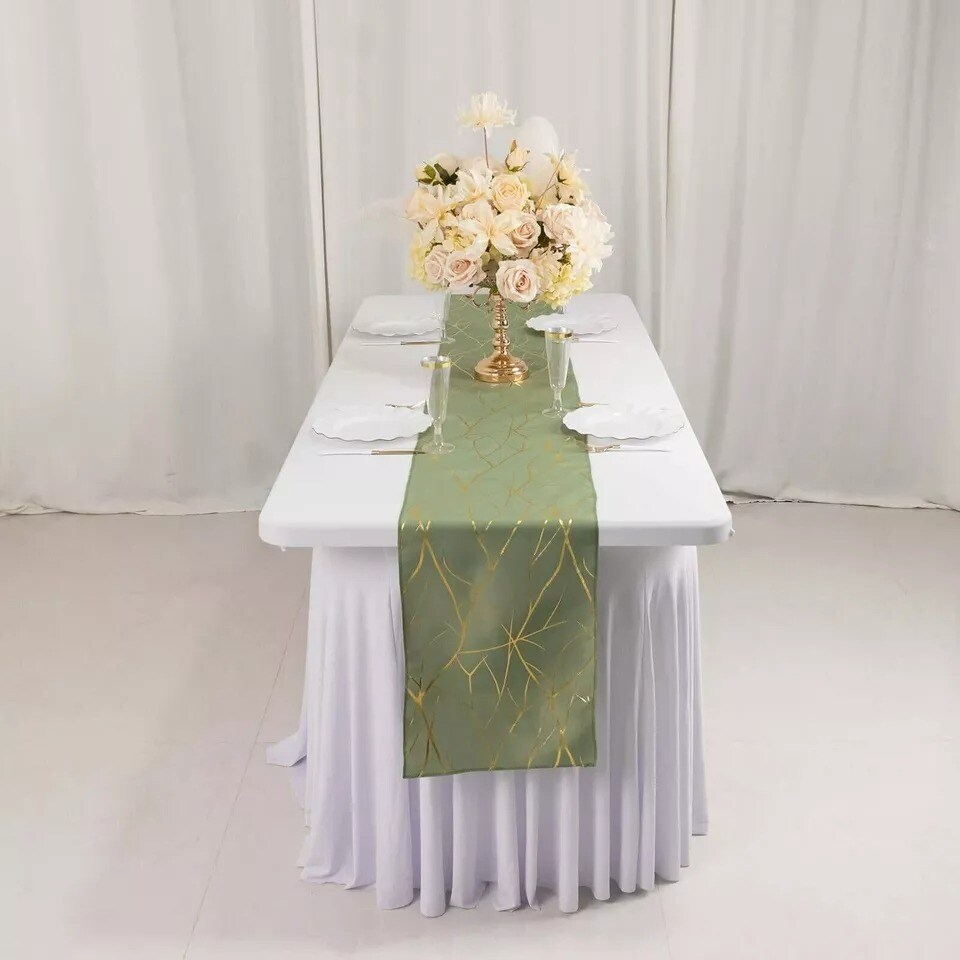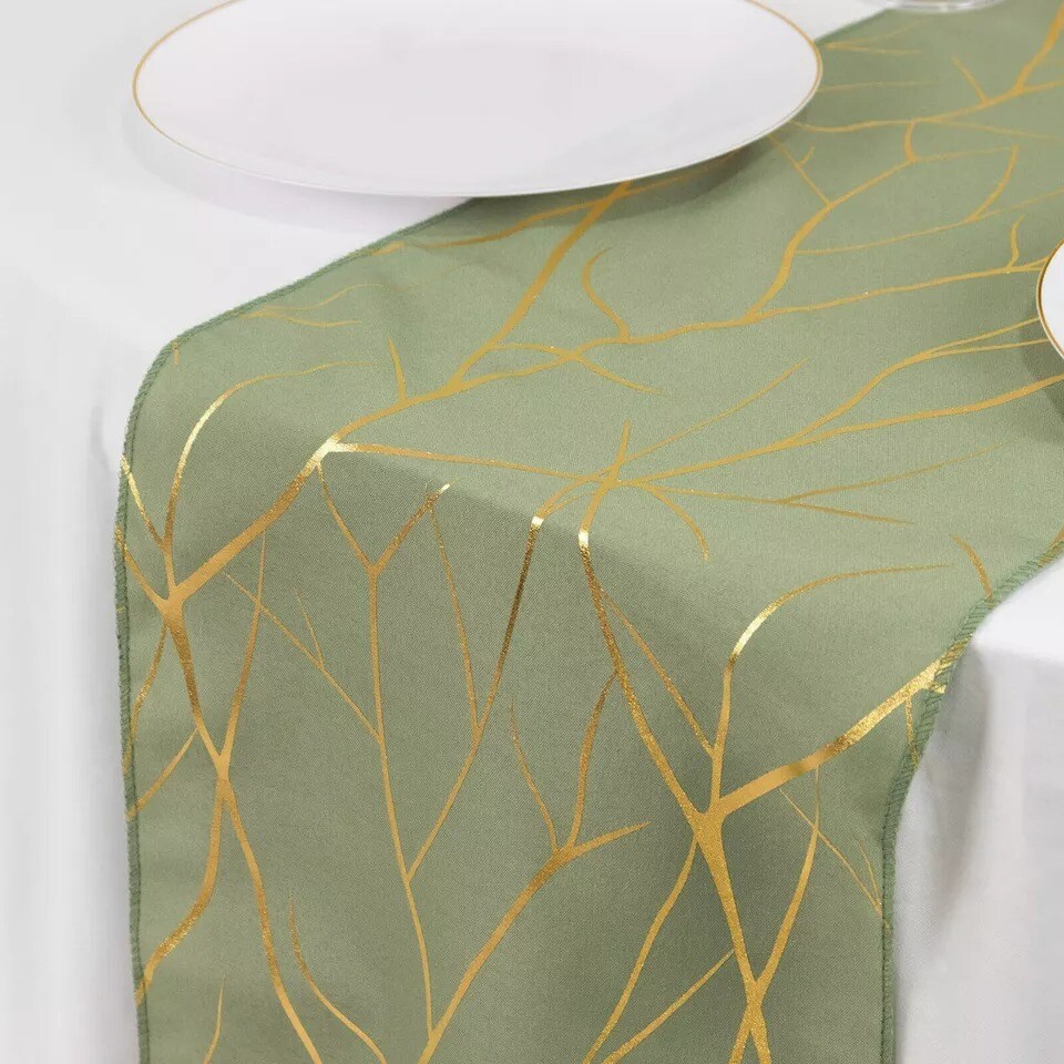 12"x108" Dusty Sage Geometric Polyester Table Runner Party Wedding Decorations