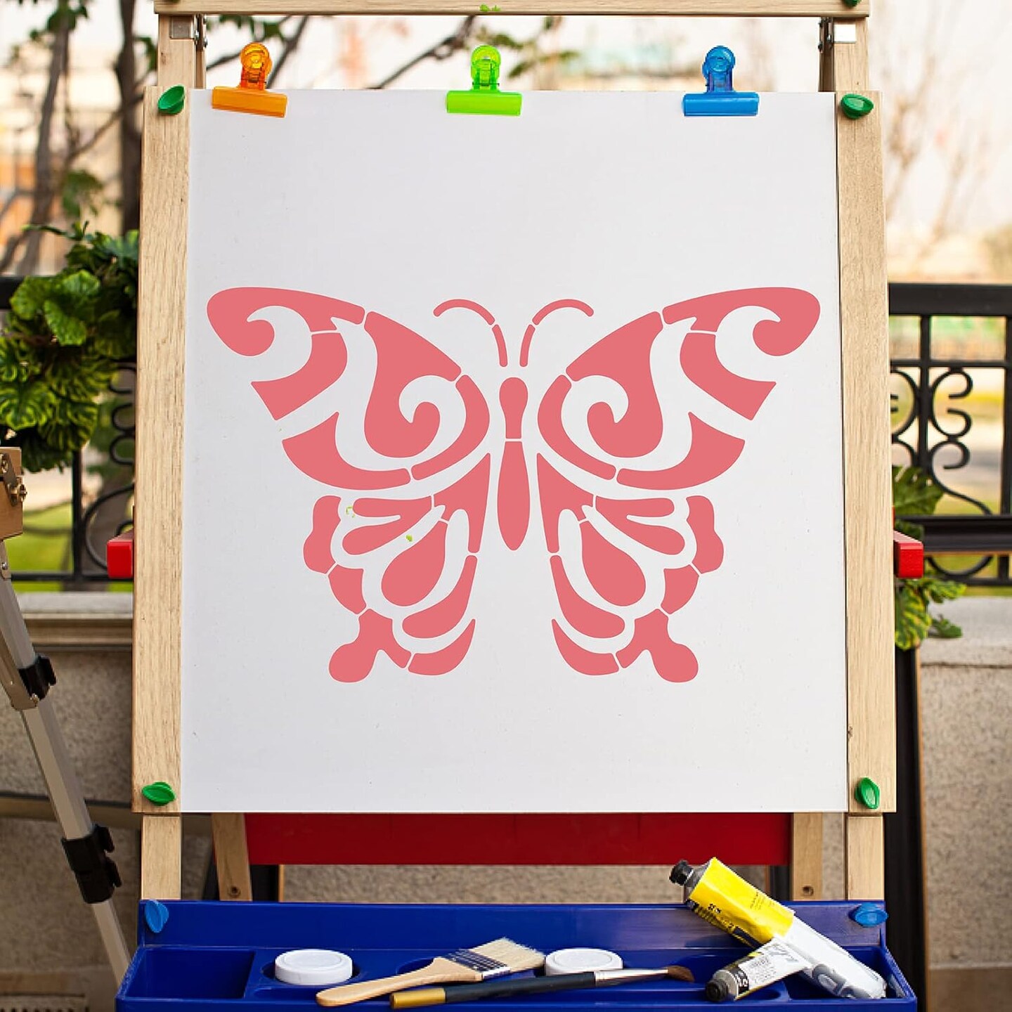 12"x12" Butterfly Mandala Stencil – Reusable Plastic Template for Painting on Wall, Wood, Fabric, Tile, Canvas, Crafts & DIY Home Decor